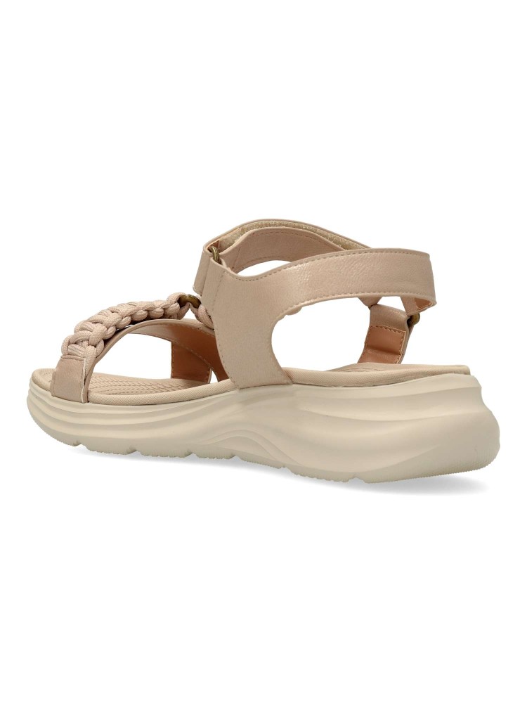 Sandalia cómoda de mujer, con ajuste adherente. Fabricado en material sintético. Suela de goma ligera y flexible. Planta acolchada. Color beige. Máximo confort, en una sandalia versátil y fácil de combinar. Ideal con tus looks de verano.