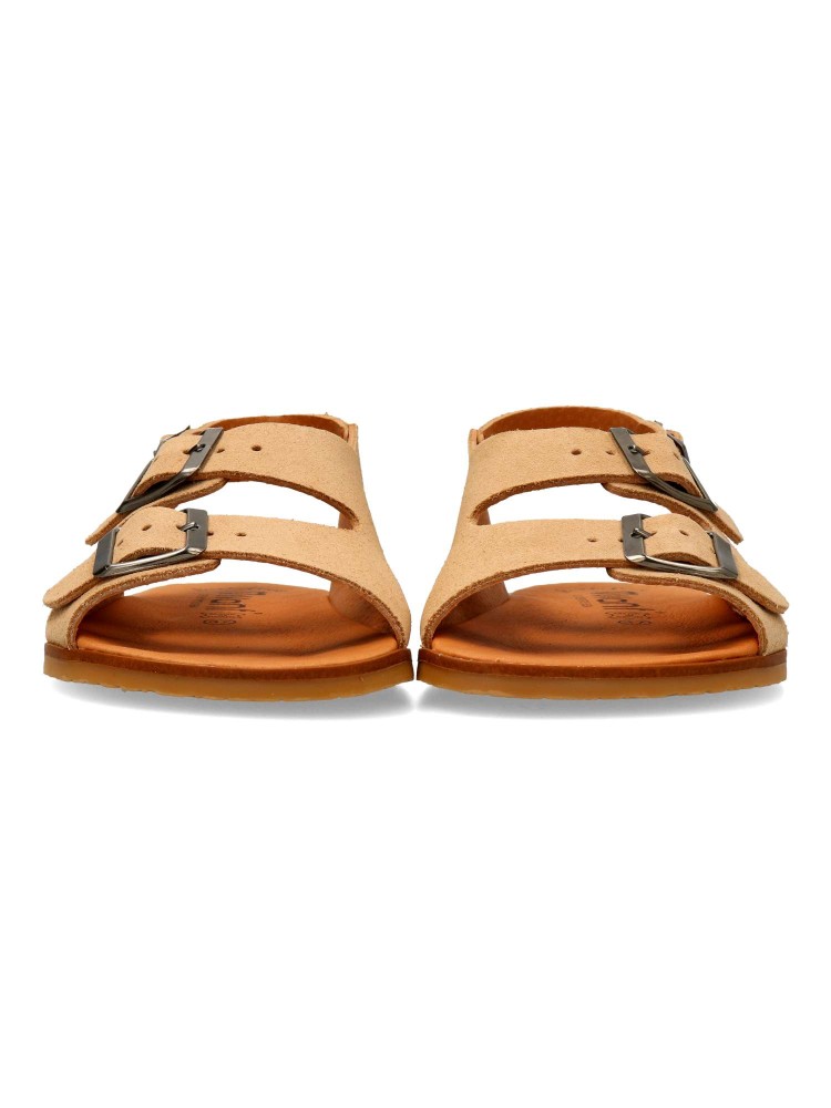 Sandalias barefoot, con suela fina, flexible, antideslizante y sin drop. Calzado respetuoso que permite una pisada natural y saludable. Corte en piel cuero texturizada, suave, transpirable y resistente. Horma ancha y plantilla ergonómica. Hecho en España.