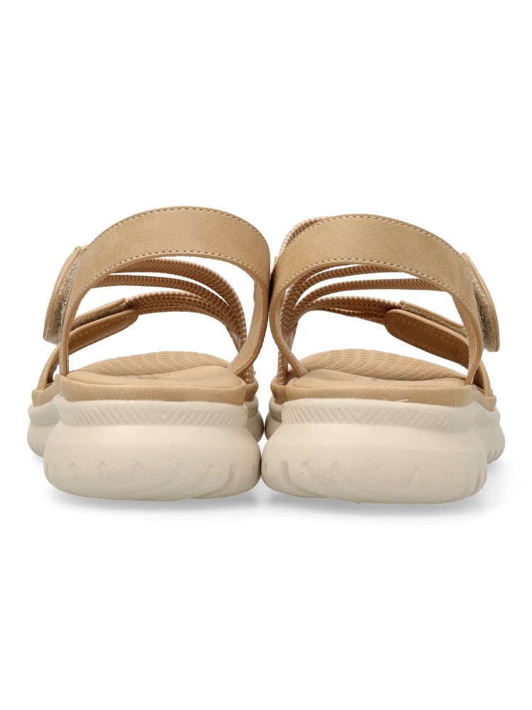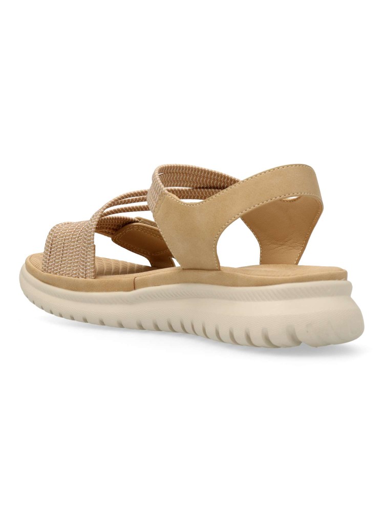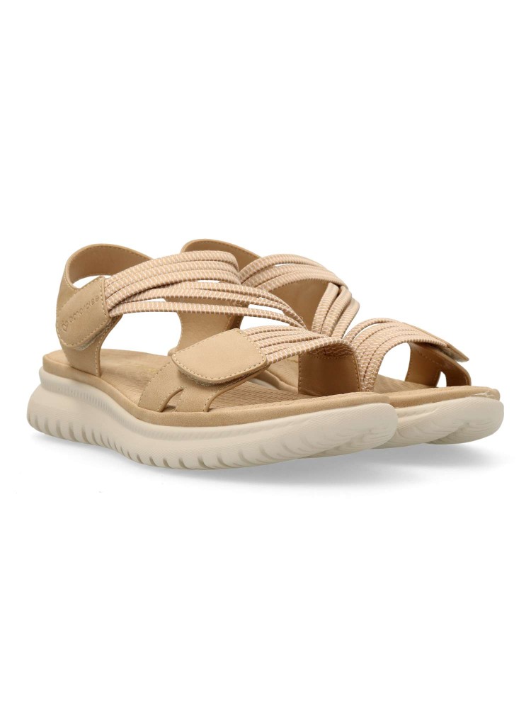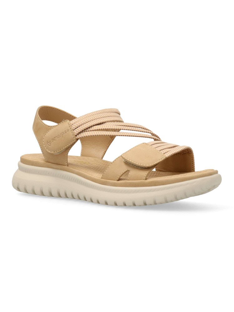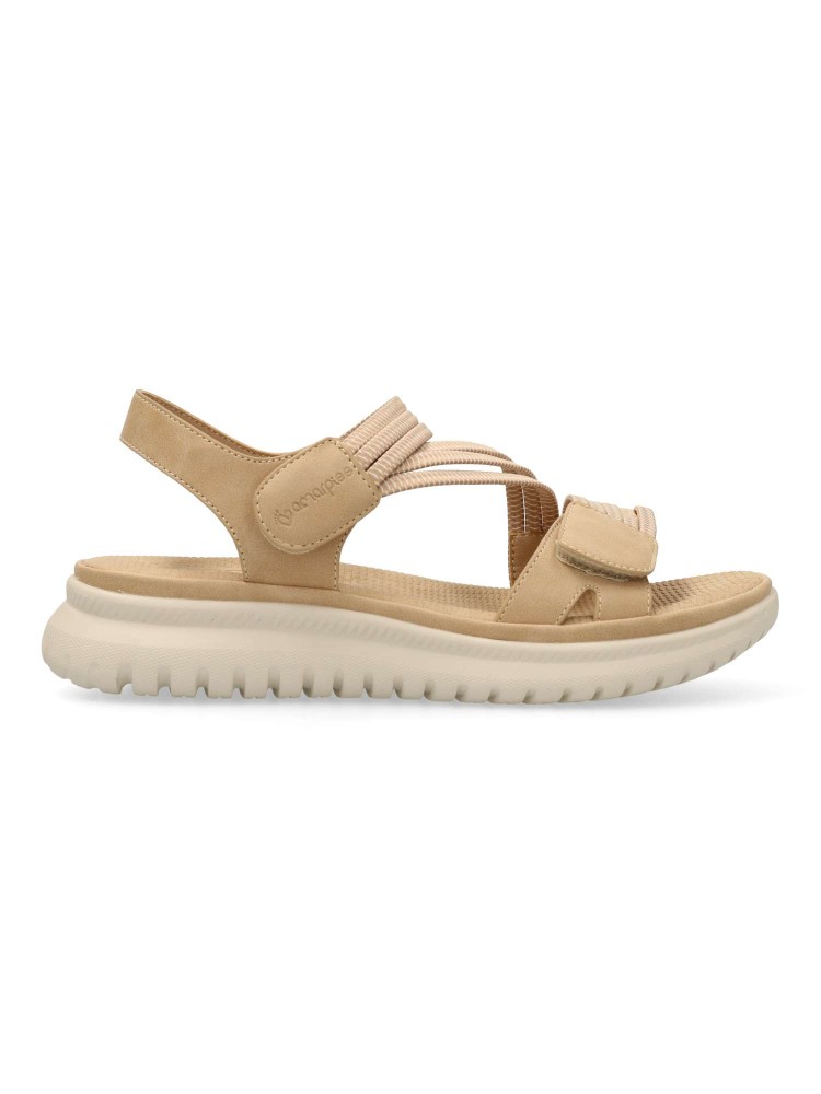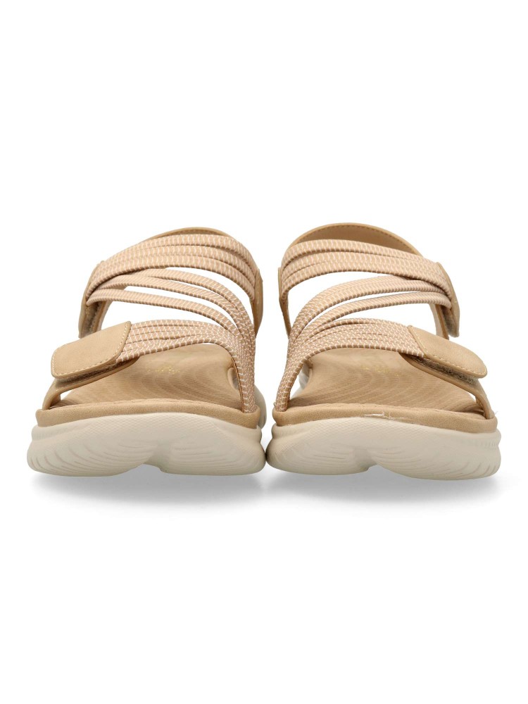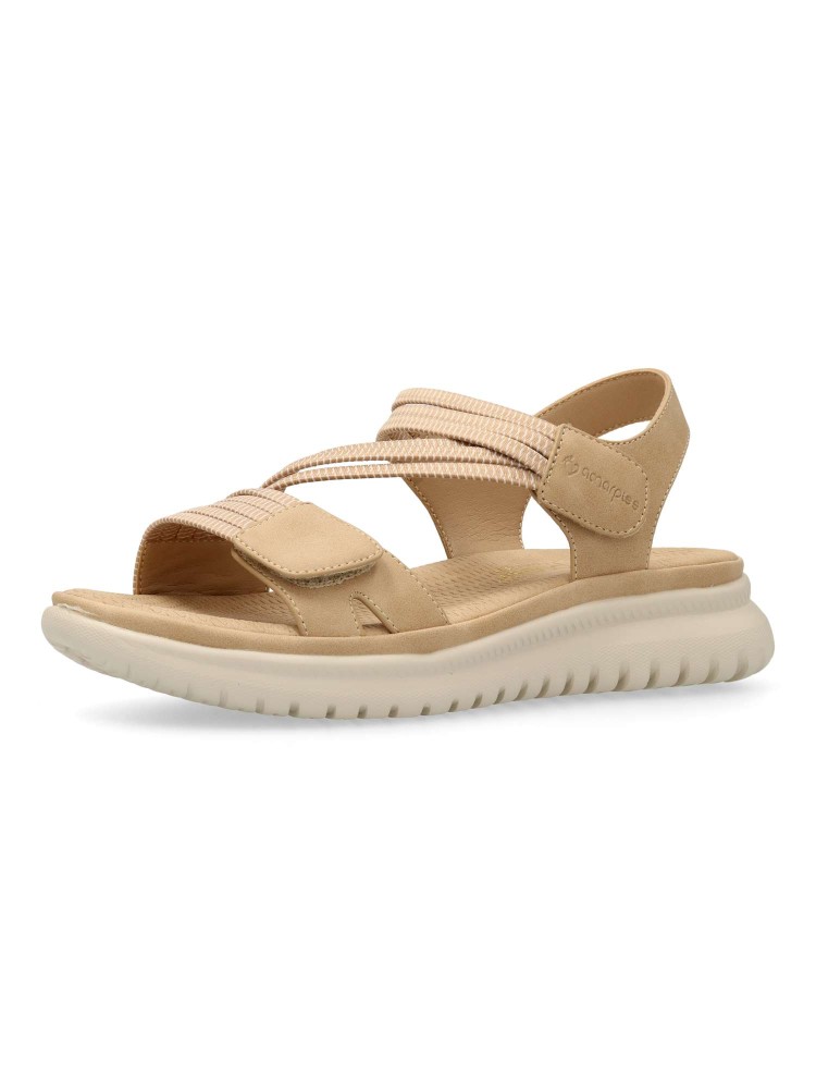 Sandalia deportiva de mujer, estilo casual. Cierre de tiras adherentes. Modelo cómodo, fabricado en piel sintética y tiras elásticas. Suela de goma ligera y flexible. Planta acolchada. Original y versátil, para dar el máximo confort a tus paseos de verano