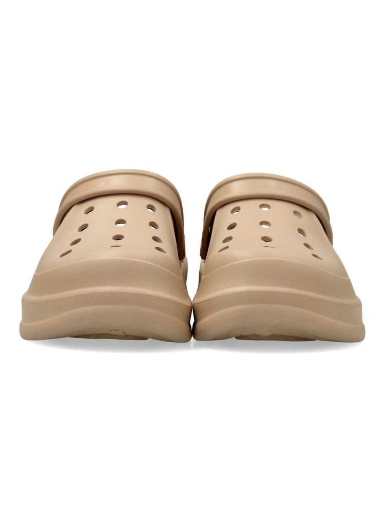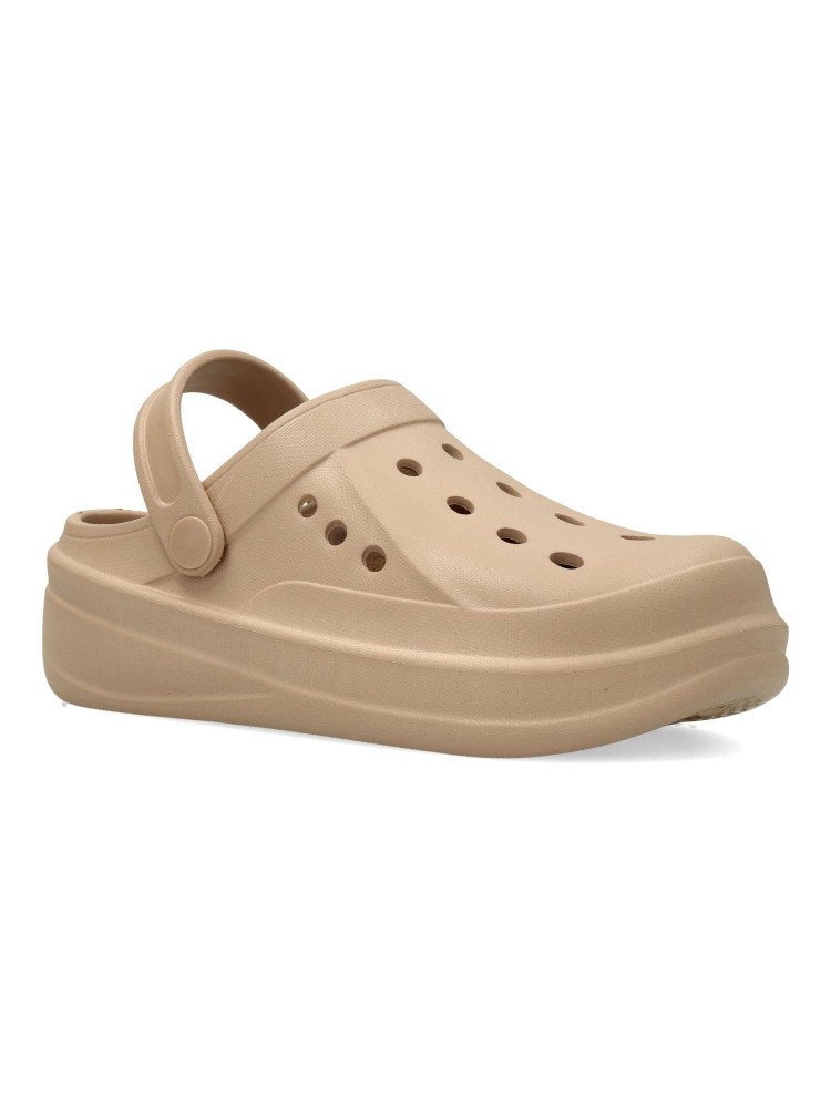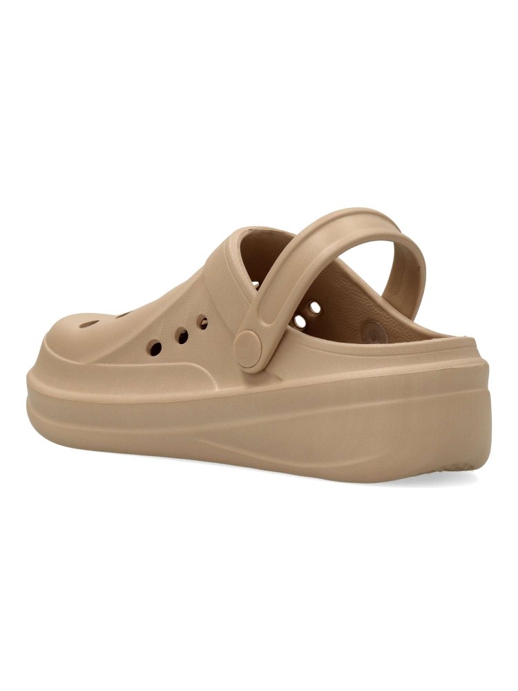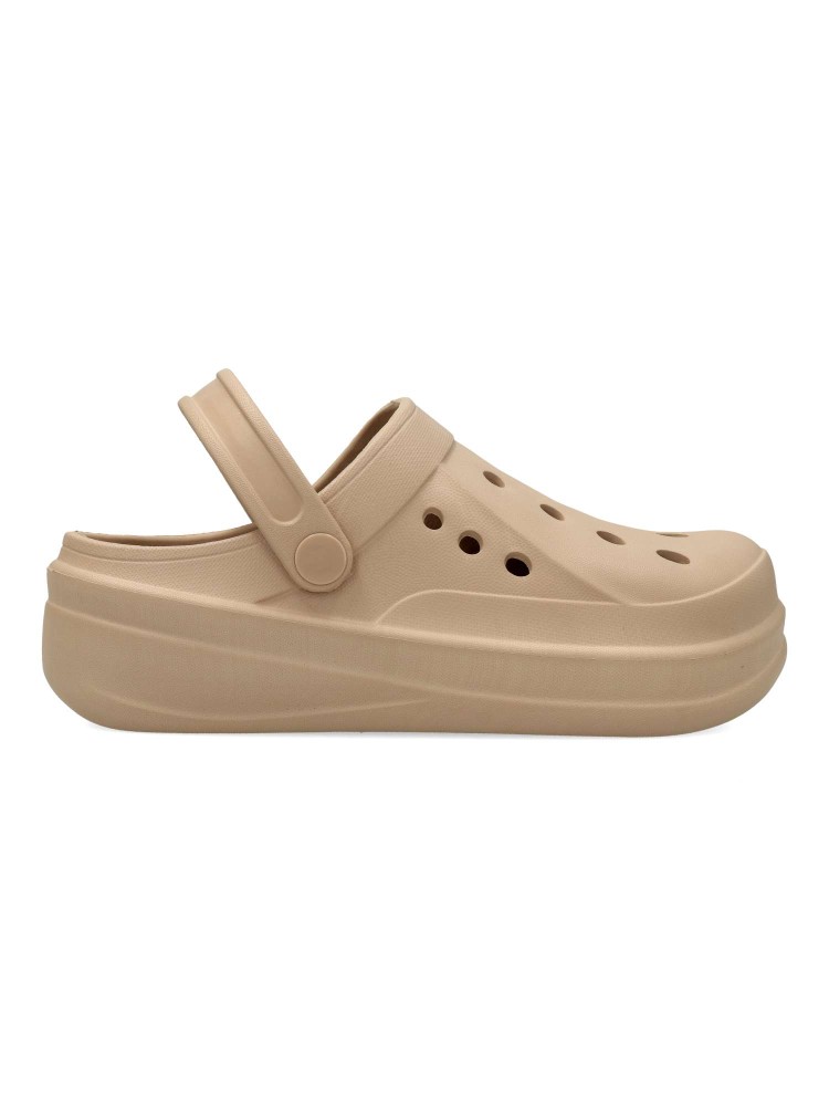 Zueco de estilo casual, con diseño troquelado y fabricado en material ligero y flexible, ideal para los días más calurosos. Incorpora una cinta trasera ajustable. Suela antideslizante. Perfecto para un look desenfadado y práctico. Certificado vegano.