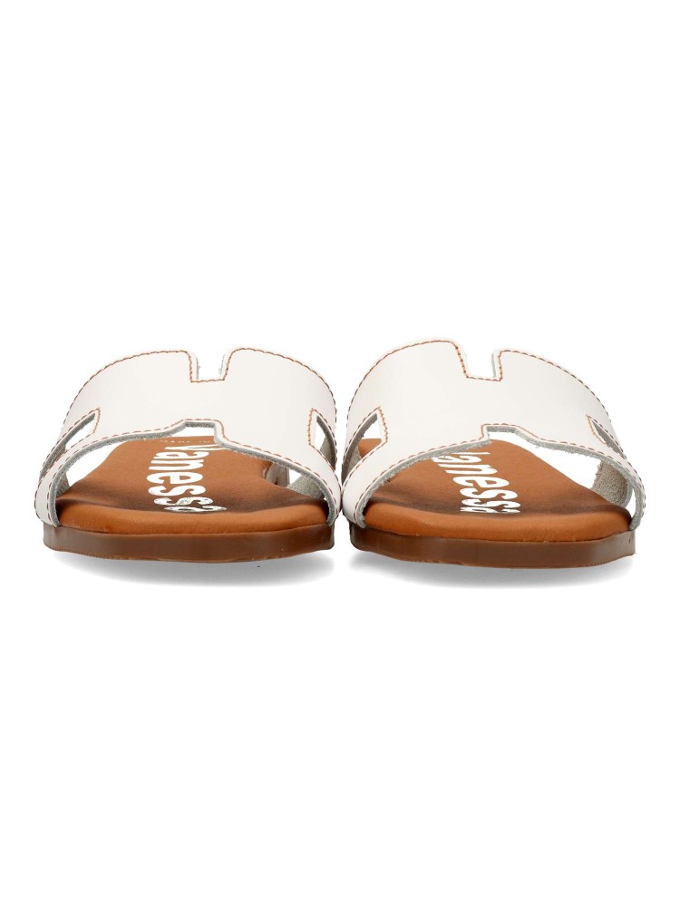 Sandalia cómoda de pala para mujer. Fabricada en piel de calidad color blanca, con suela de goma flexible. Forros y plantillas 100% transpirables. Planta acolchada. Todo un básico que te ofrece confort y bienestar. Hecho en España.