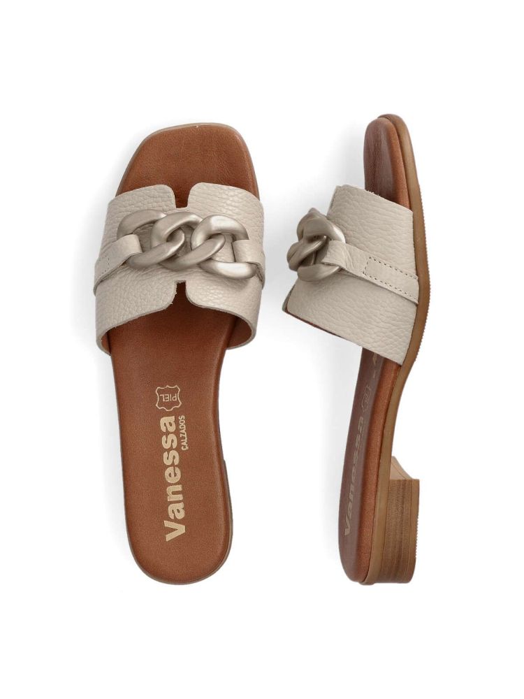 VANESSA Sandalia piel plana adorno cadena