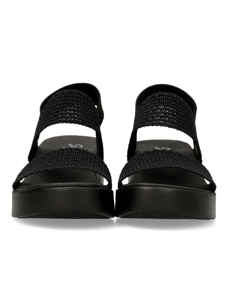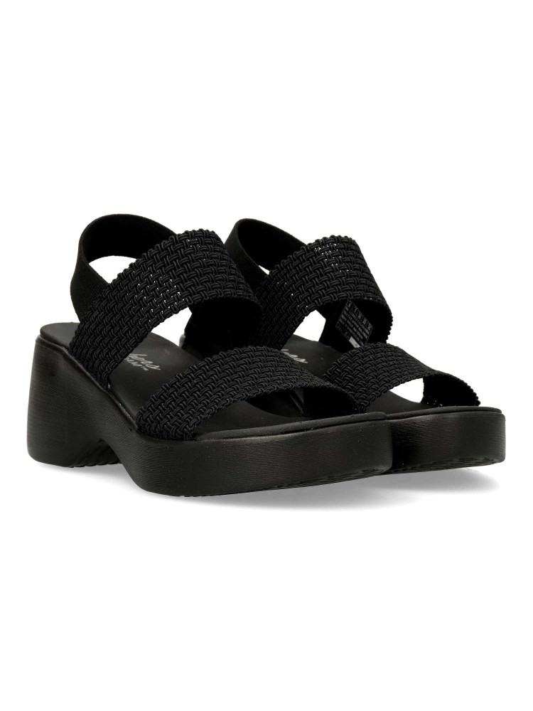 Realza tus looks con la elegante comodidad de las Skechers Cali® Cali Day. Esta ligera sandalia color negra, cuenta con una parte superior con una doble correa de knit, tira trasera y una plantilla con amortiguación Luxe Foam®.