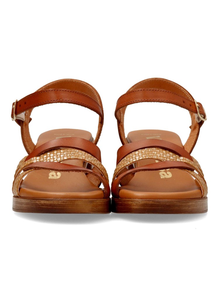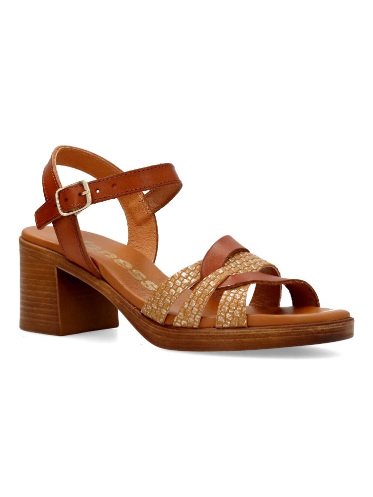 Sandalia cómoda de mujer, con cierre de hebilla. Modelo de tiras cruzadas, fabricado en piel, con suela de goma. Planta de piel, con acolchado de gel. Tacón ancho efecto madera de 5,5 cm. Diseño y confort para tus outfits de verano. Hecho en España.