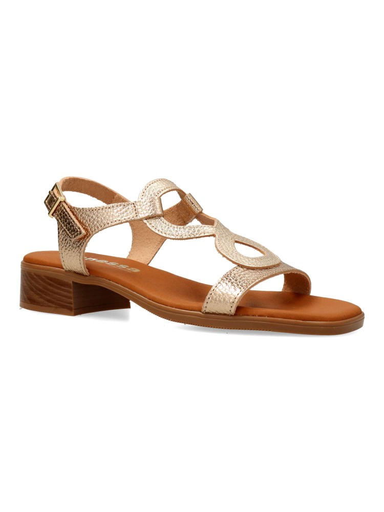 Sandalia cómoda de tiras metalizadas. Fabricado en piel, con suela de goma. Cierre de hebilla. Forros y plantillas 100% transpirables. Planta acolchada. Altura tacón 3 cm. Agradable sensación de confort y bienestar. Hecho en España.