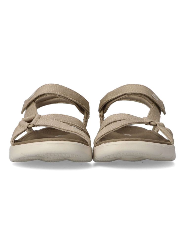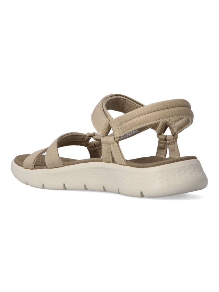 Skechers GO WALK® Flex Sandal - Sublime. Esta elegante sandalia deportiva presenta una parte superior textil con cierre de velcro al tobillo, plantilla Goga Mat® contorneada y la amortiguación ligera ULTRA GO®. Color taupe.