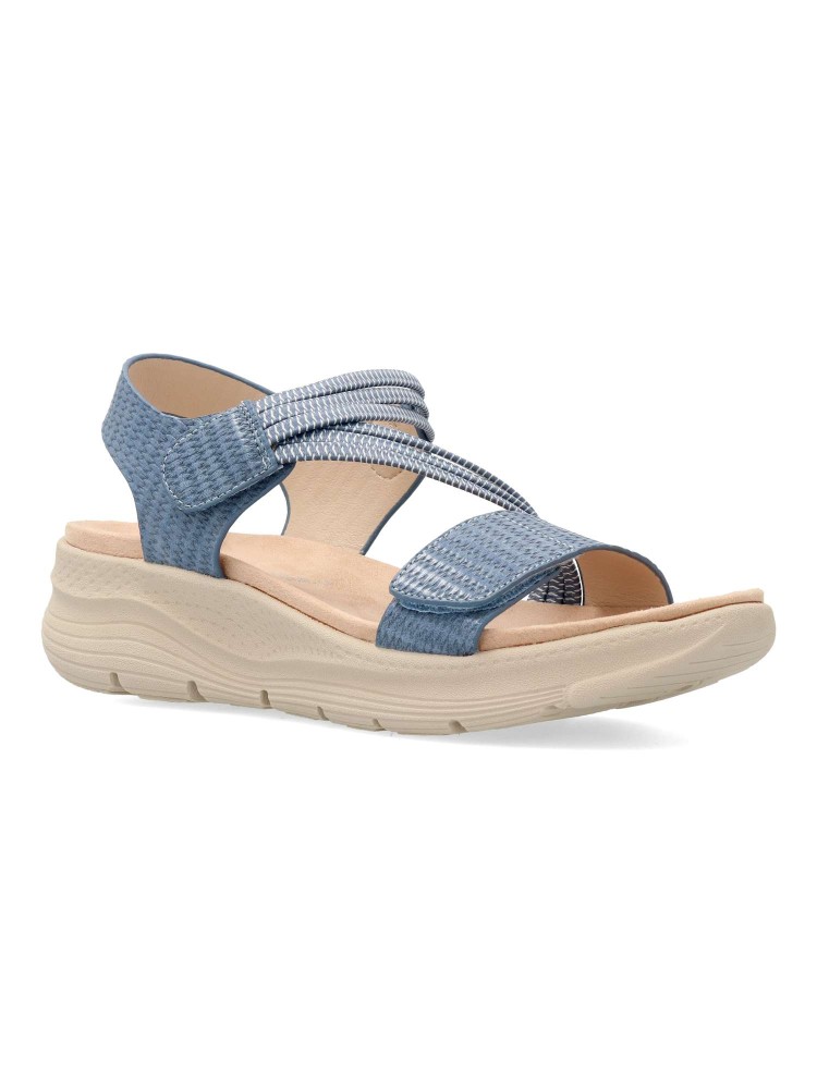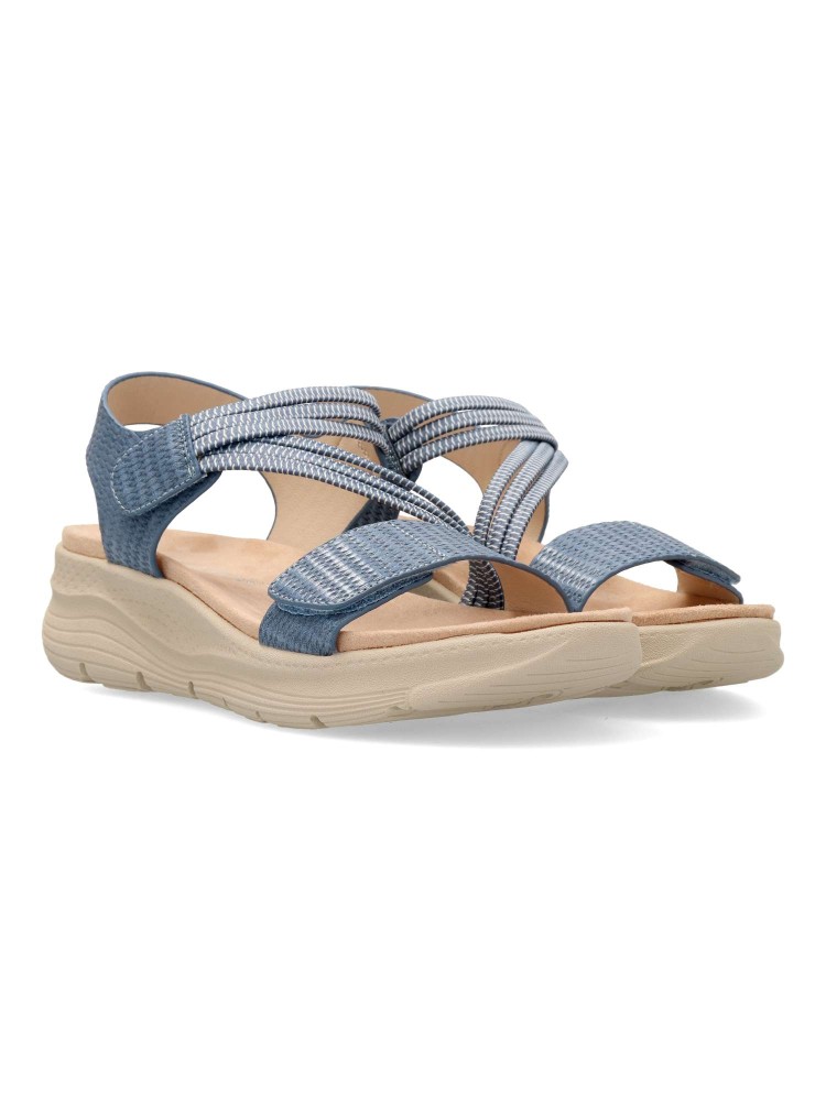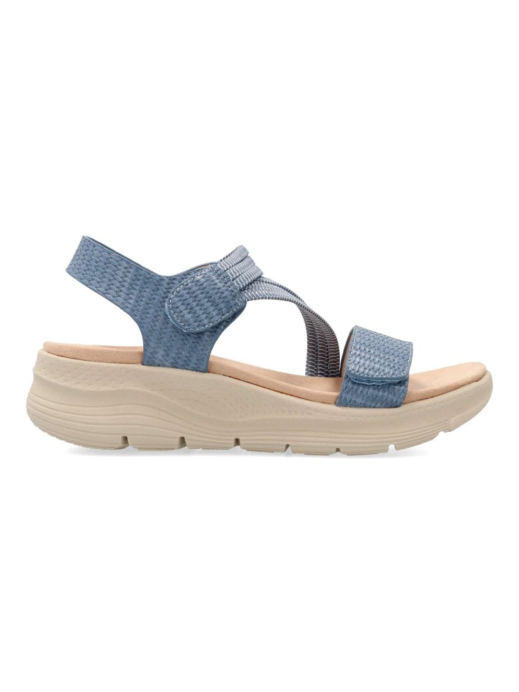Sandalia deportiva de mujer, estilo casual. Cierre de tiras adherentes. Modelo cómodo, fabricado en piel sintética y tiras elásticas. Suela de goma ligera y flexible. Planta acolchada. Original y versátil, para dar el máximo confort a tus paseos de verano