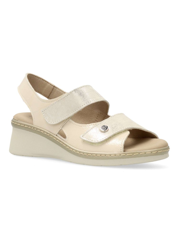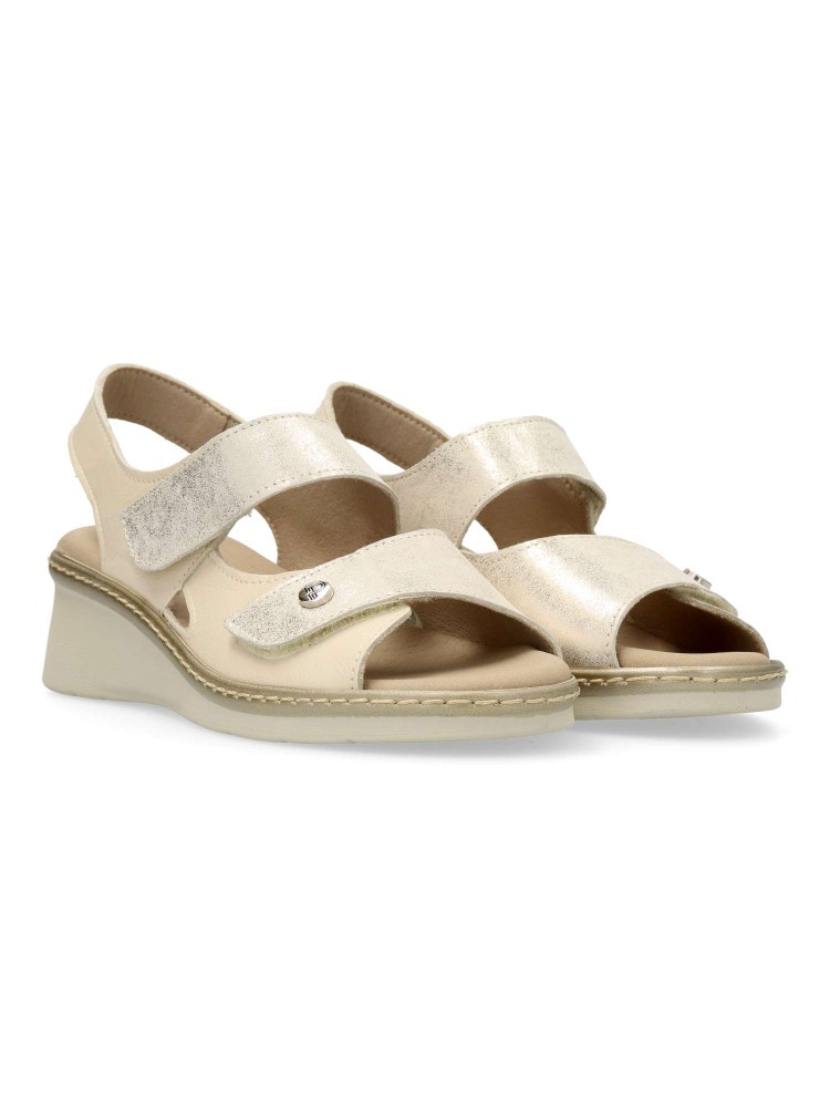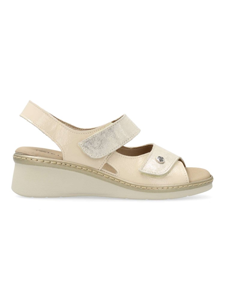 Sandalia cómoda de mujer, con cierres adherentes. Fabricado en piel de primera calidad, con suela de goma. Altura cuña 4,5 cm. Planta acolchada y extraíble. Puntera y talón descubiertos. Proporcionan una agradable sensación de confort y bienestar.