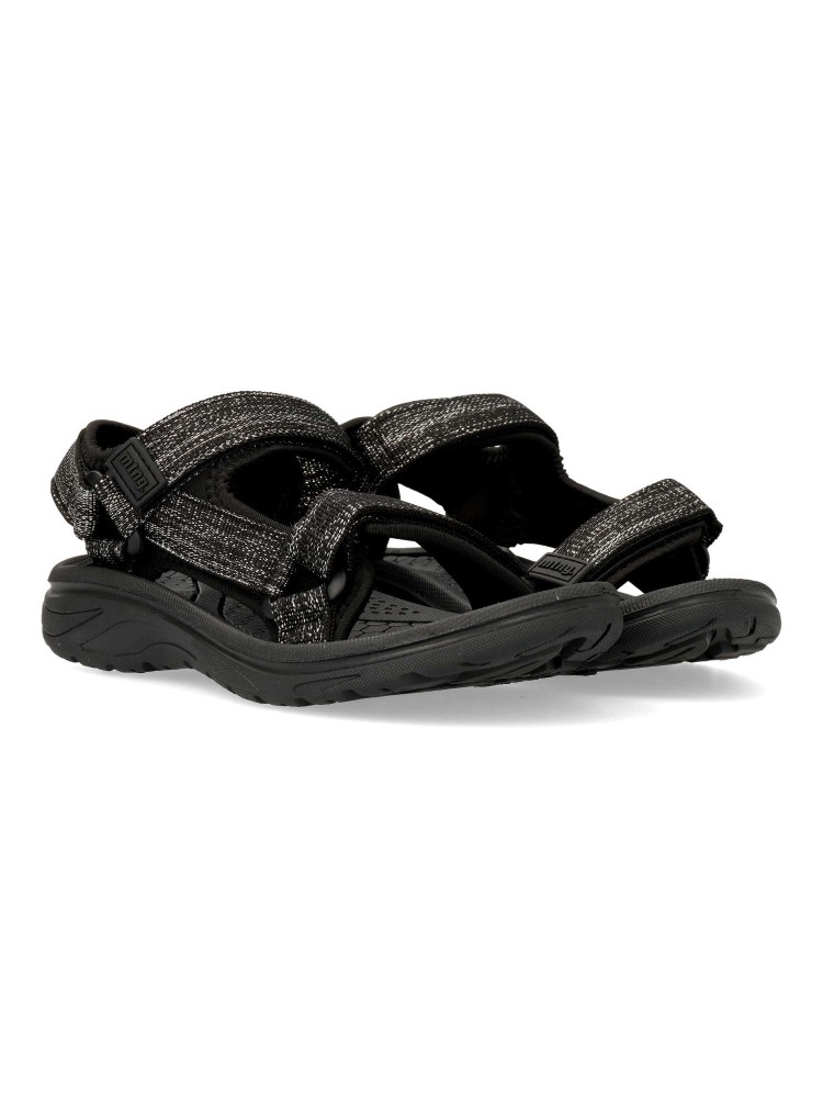 Sandalia negra modelo Tornado para mujer, de la marca Mustang. Correas ajustables con cierre adhesivo. Fabricado en textil, con suela de goma sport, ideal para los días de piscina o playa. ¡Tornado se adaptará a todas tus aventuras!