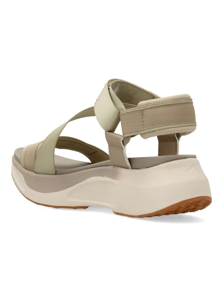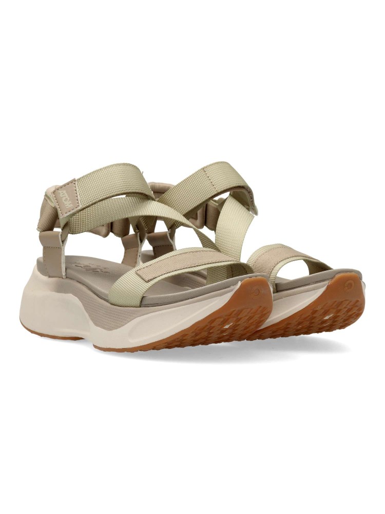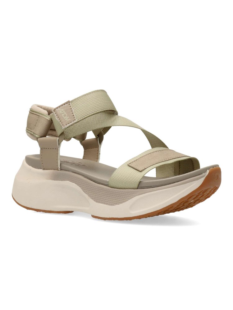 La sandalia deportiva Fusión, esta dotada de diseño y comodidad por excelencia. Cierre de velcro. Su ligera y ergonómica suela junto con la plantilla de microfibra convierten a este modelo en una sandalia versatil y práctica para la temporada. Color arena