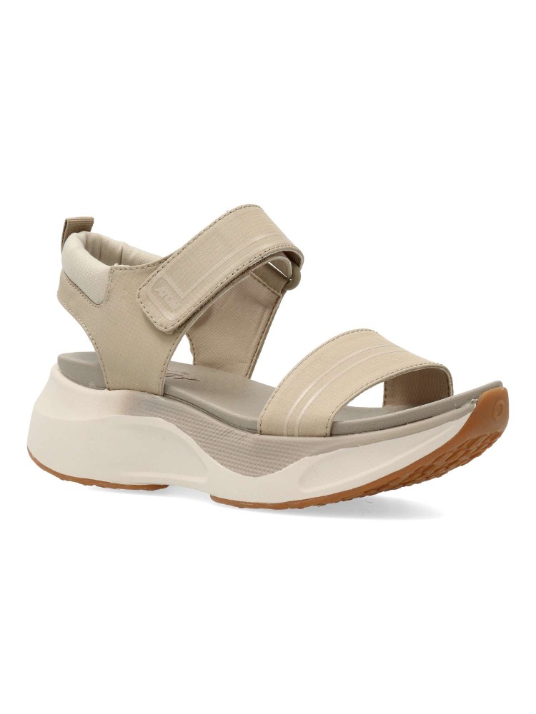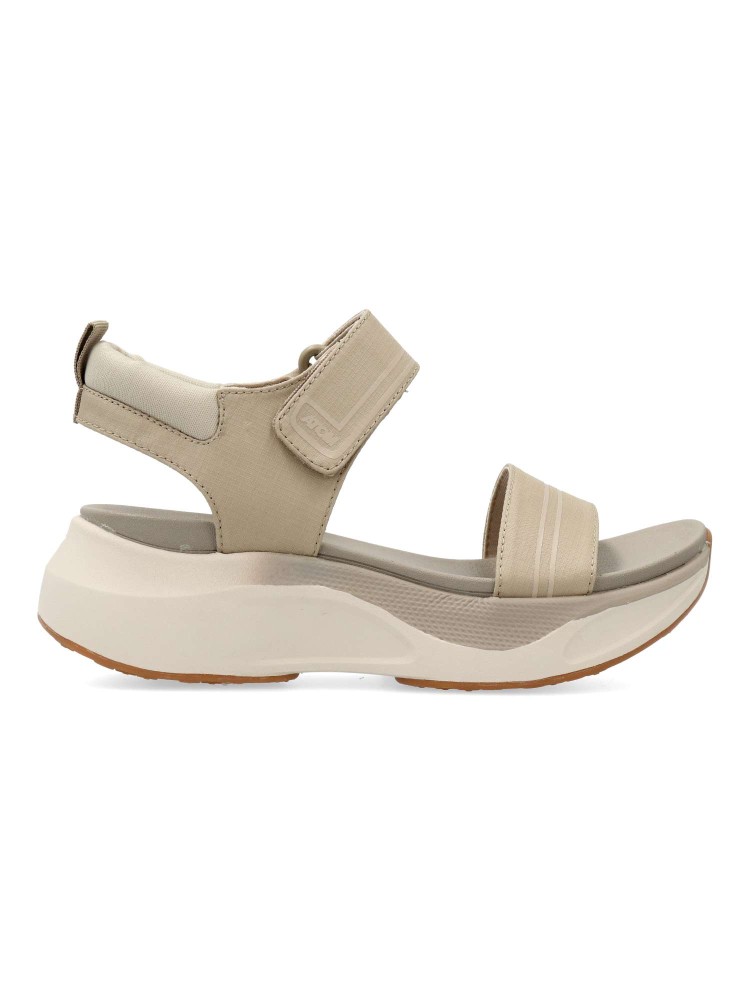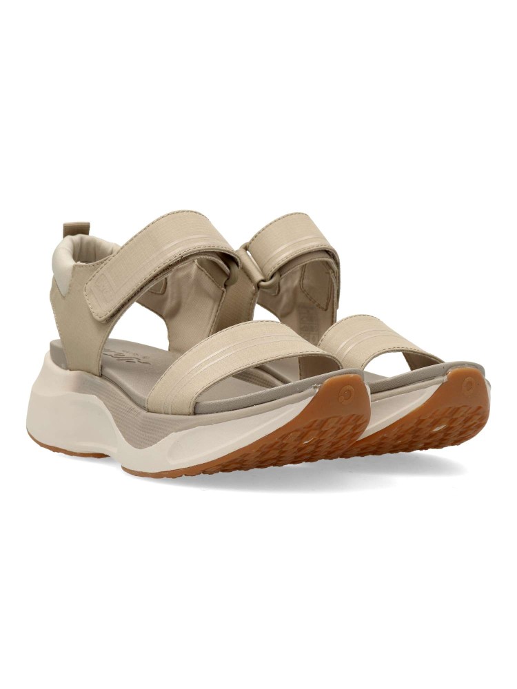 La sandalia deportiva Fusión, esta dotada de diseño y comodidad por excelencia. Cierre de velcro. Su ligera y ergonómica suela junto con la plantilla de microfibra convierten a este modelo en una sandalia versatil y práctica para la temporada. Color arena