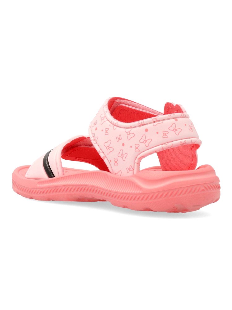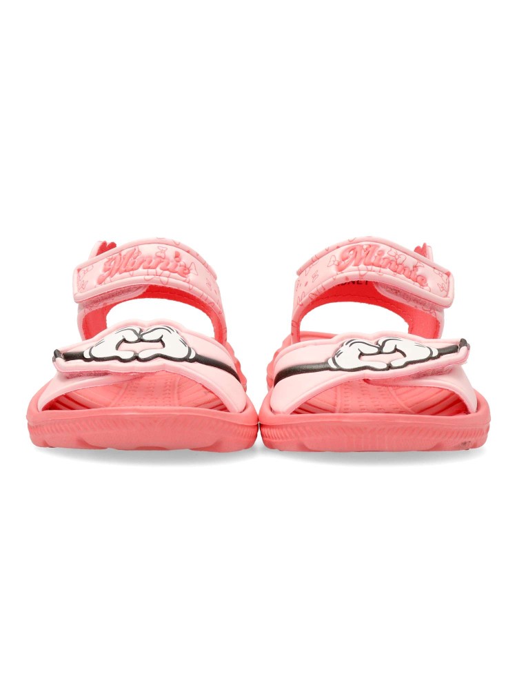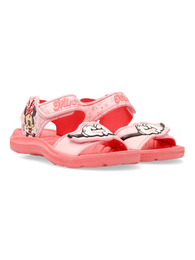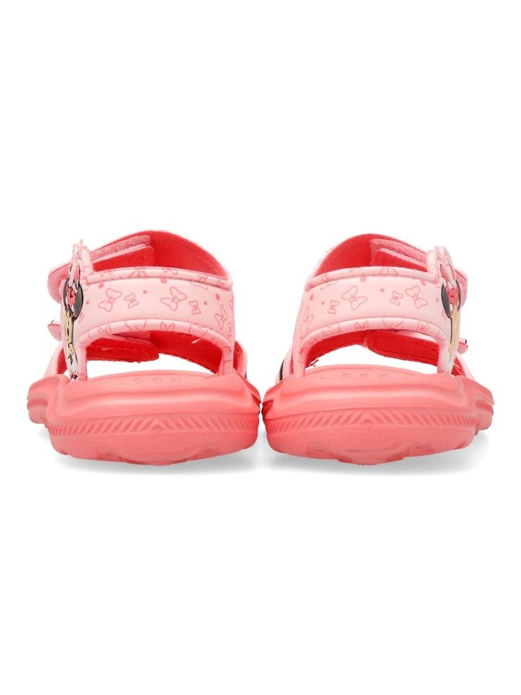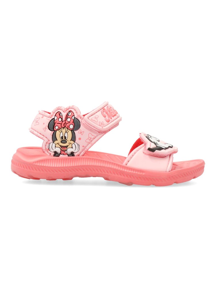 Chancla de playa para niña. Cierre adherente ajustable. Modelo tipo sandalia californiana, ideal para la playa y la piscina. Fabricado en goma eva. Disponible en color rosa nude. Diseñado para el disfrute y confort de las niñas. Dibujo Minnie.