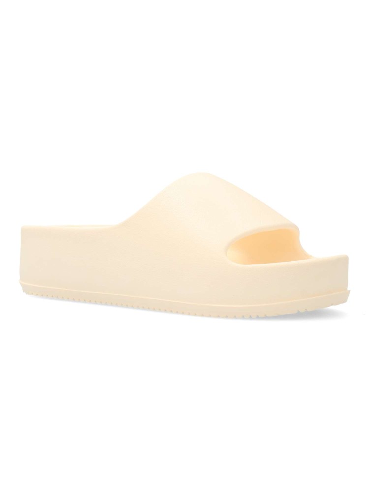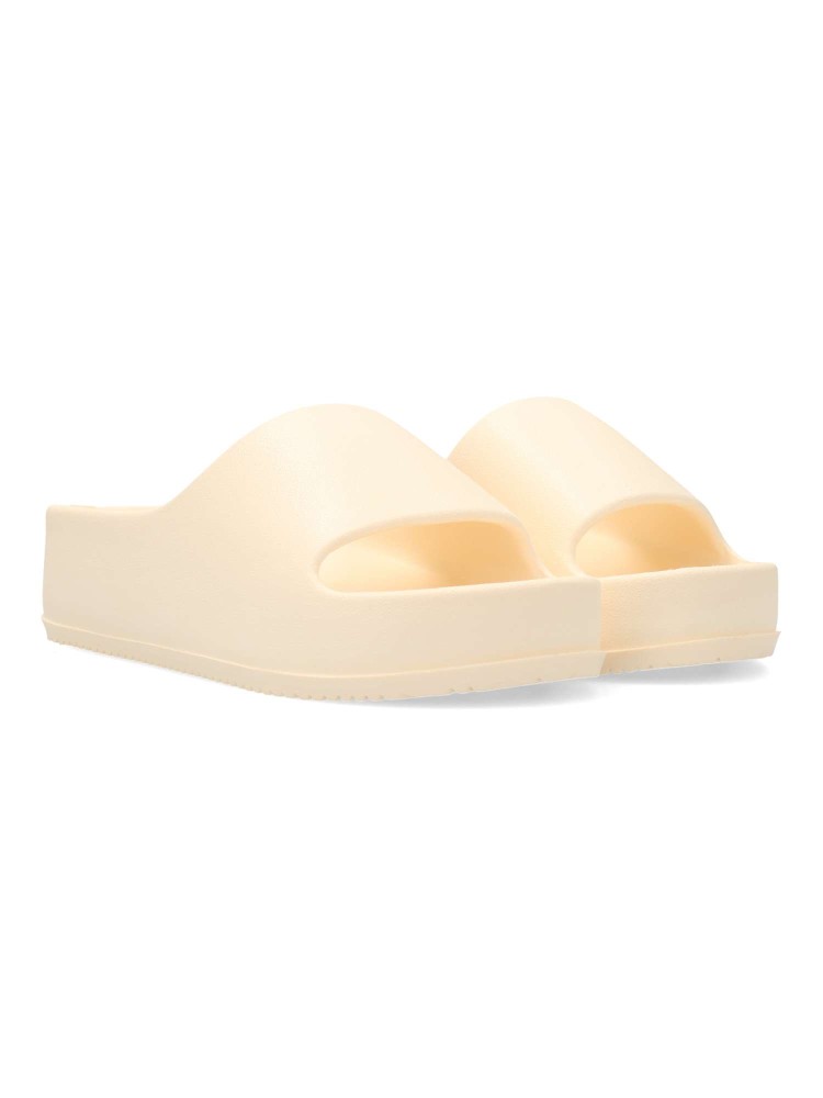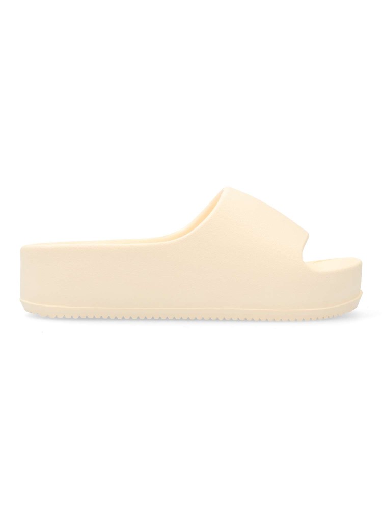 Sandalias de pala con plataforma en color beige para señora. Este modelo, fabricado en goma eva, es ideal para la playa y la piscina. Altura 4 cm. Planta anatómica. Llévalo con pantalones cortos o un vestido ligero para un look casual y cómodo.