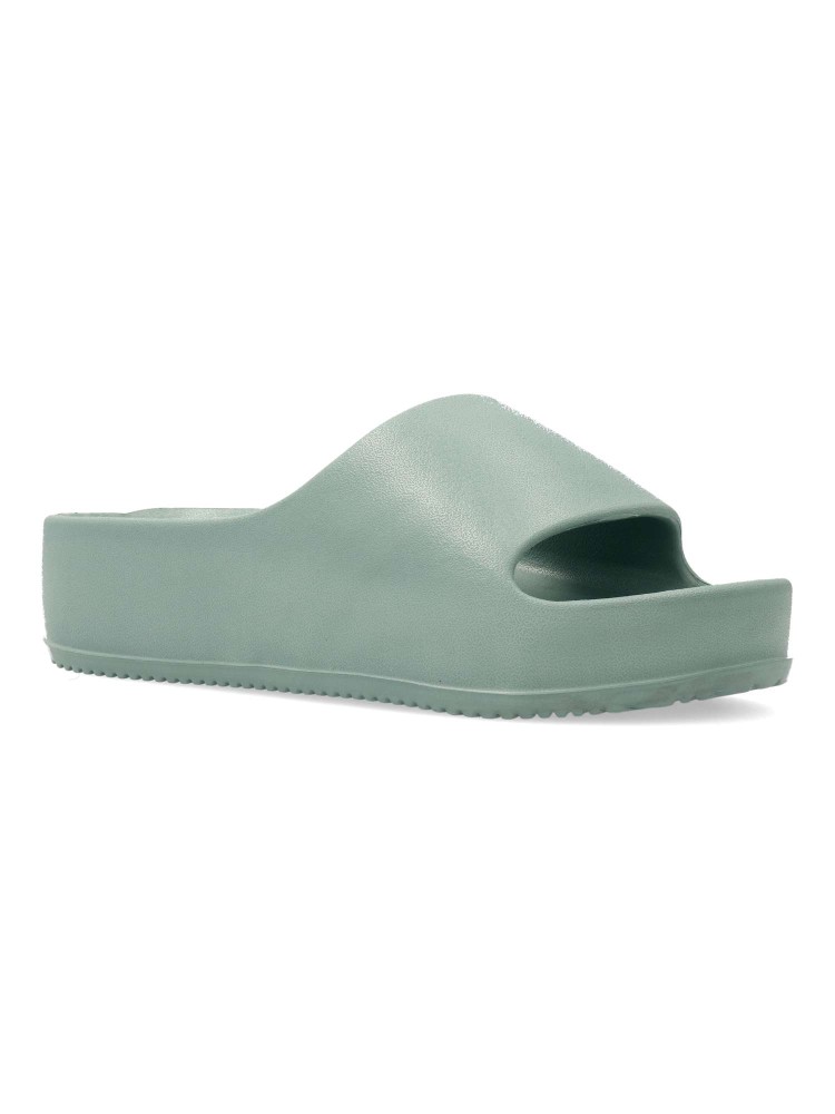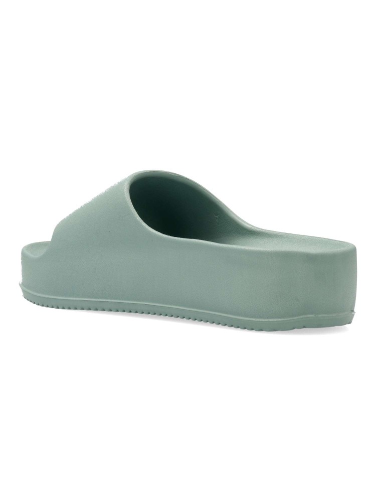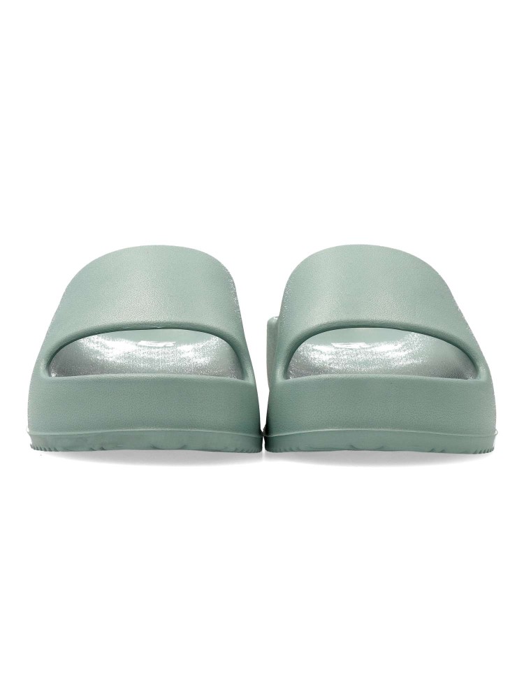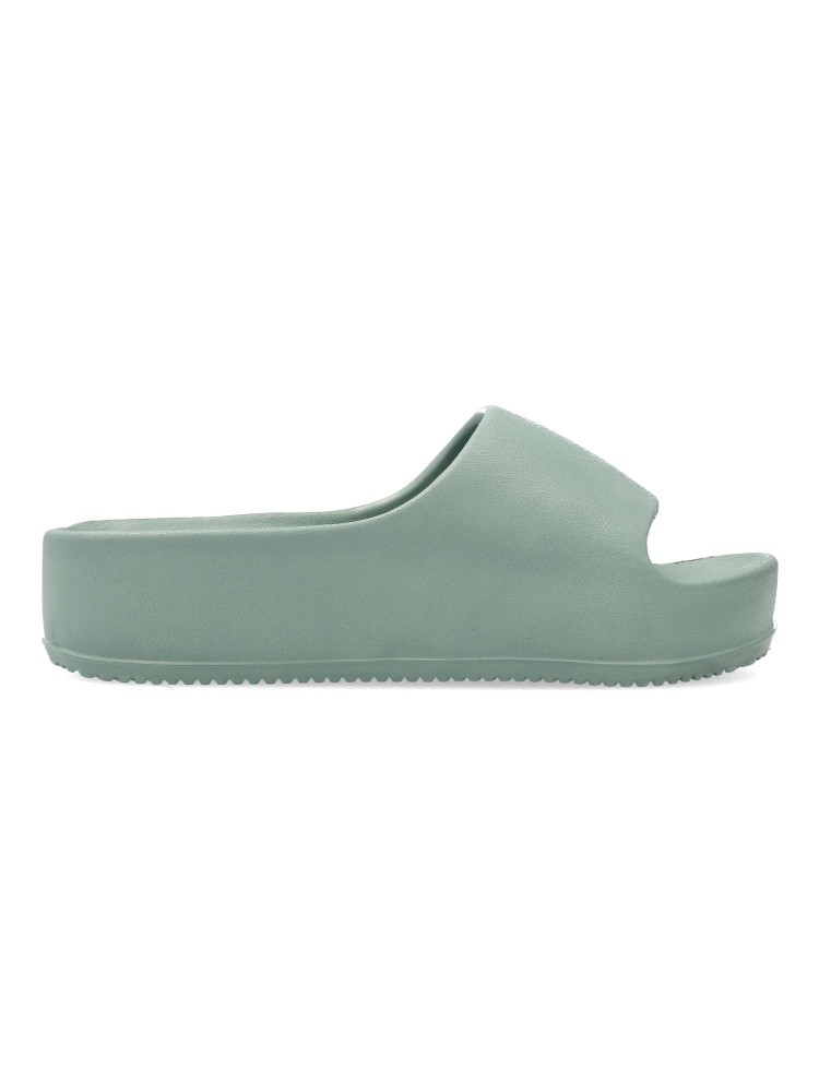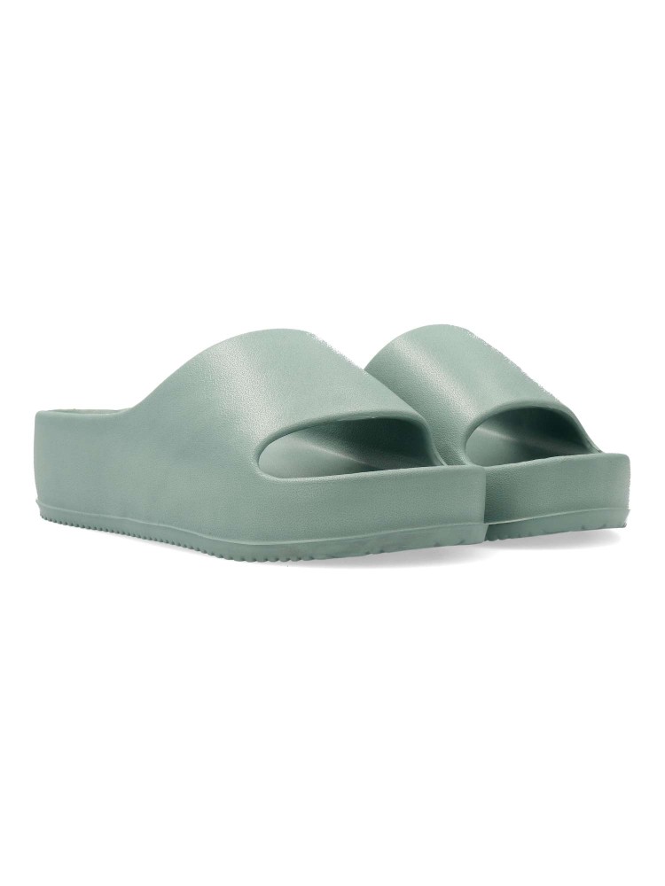 Sandalias de pala con plataforma en color agua para señora. Este modelo, fabricado en goma eva, es ideal para la playa y la piscina. Altura 4 cm. Planta anatómica. Llévalo con pantalones cortos o un vestido ligero para un look casual y cómodo.