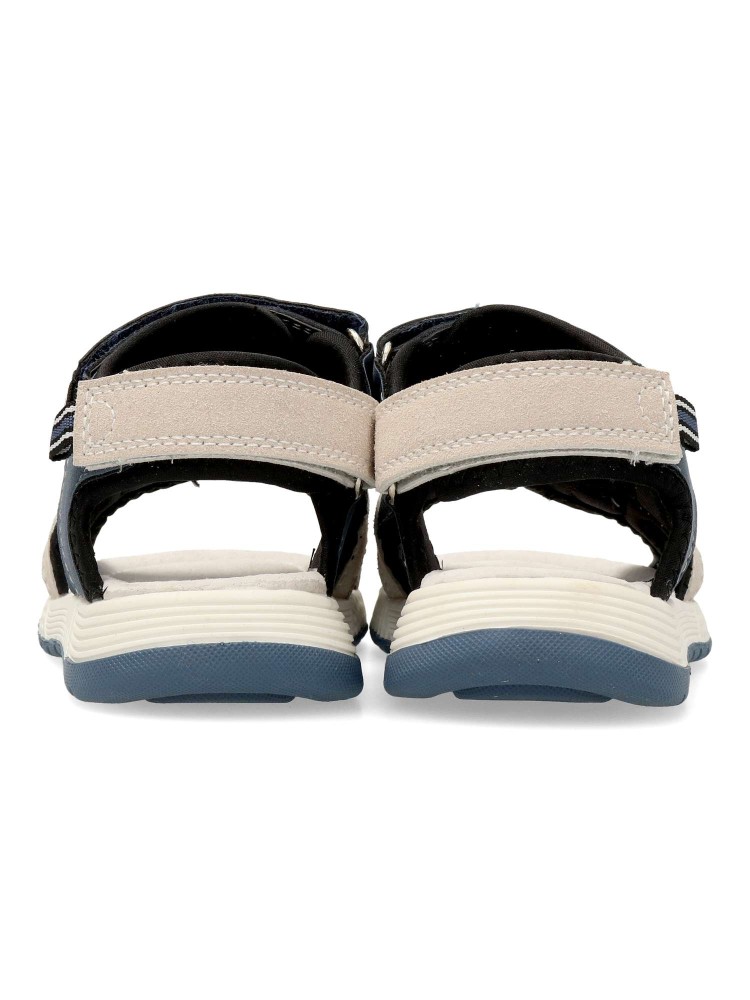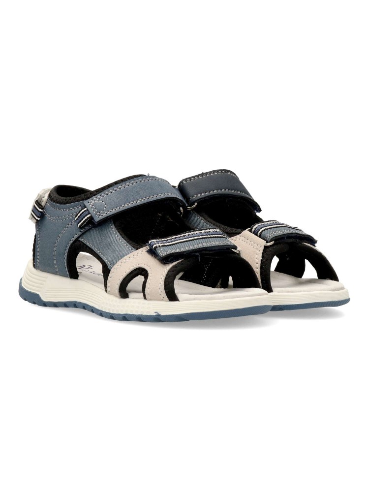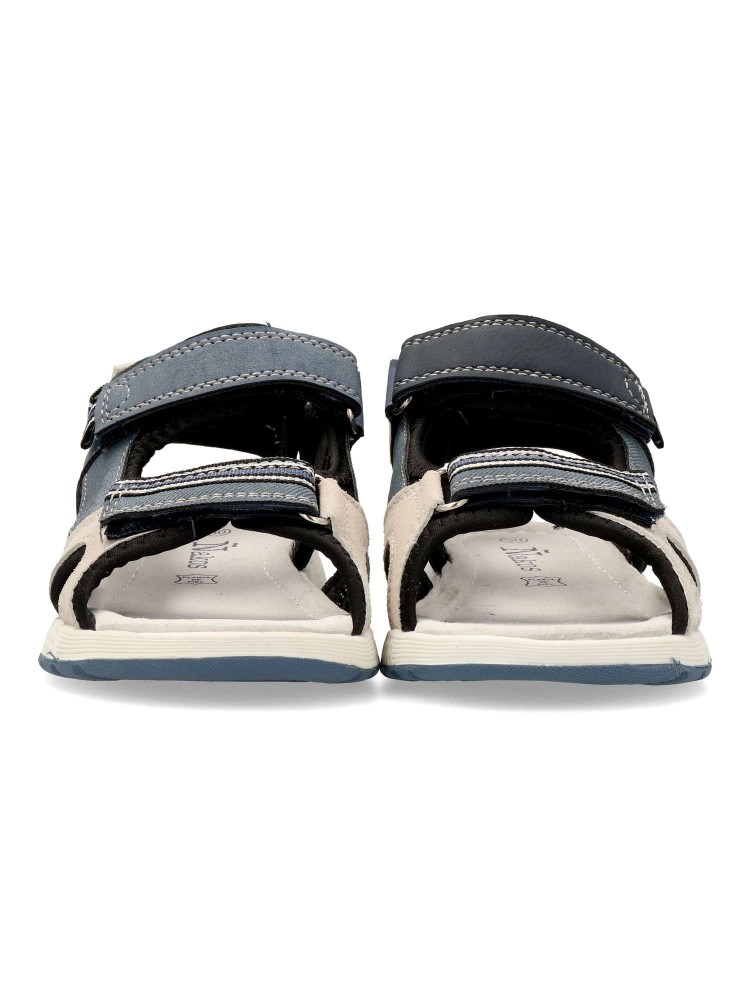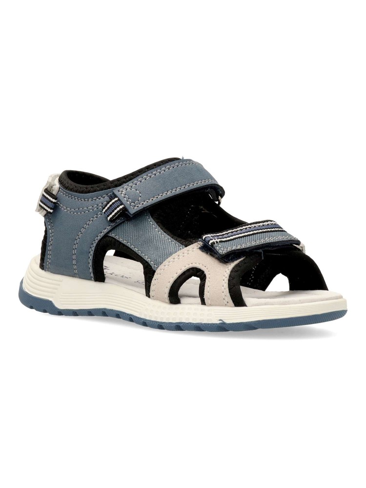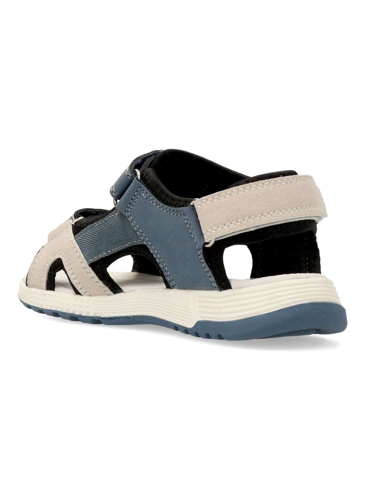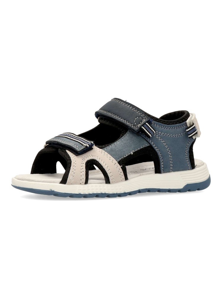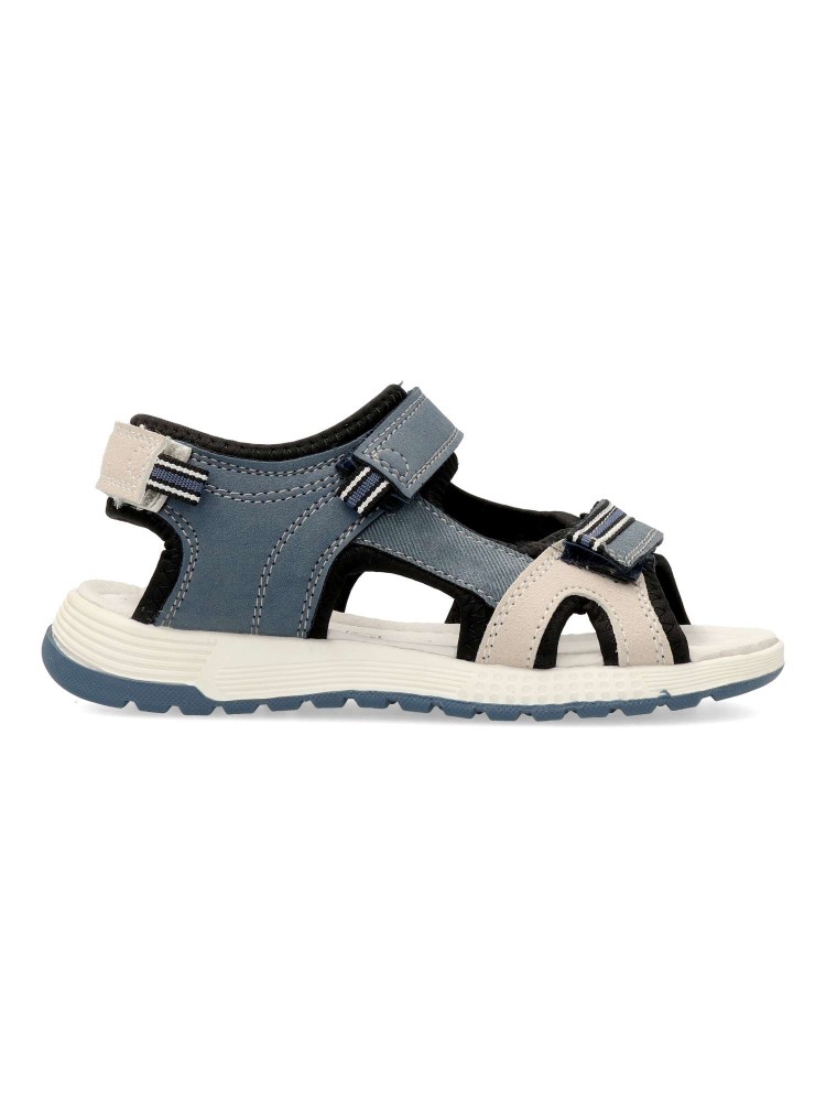 Sandalia deportiva de niño, estilo casual. Cierre adherente. Modelo cómodo, fabricado en piel sintética, con suela de goma flexible y ligera. Planta de piel acolchada. Color jeans. Californiana versátil, para el disfrute y confort de los niños.