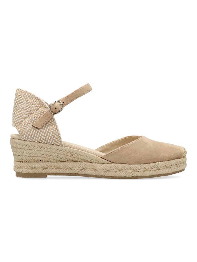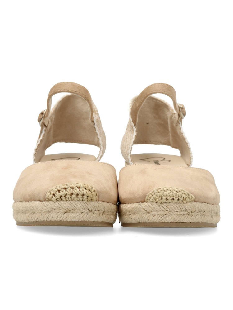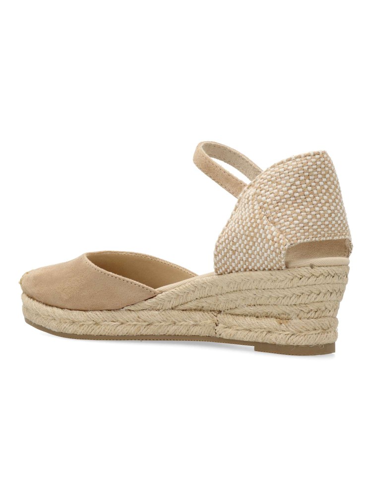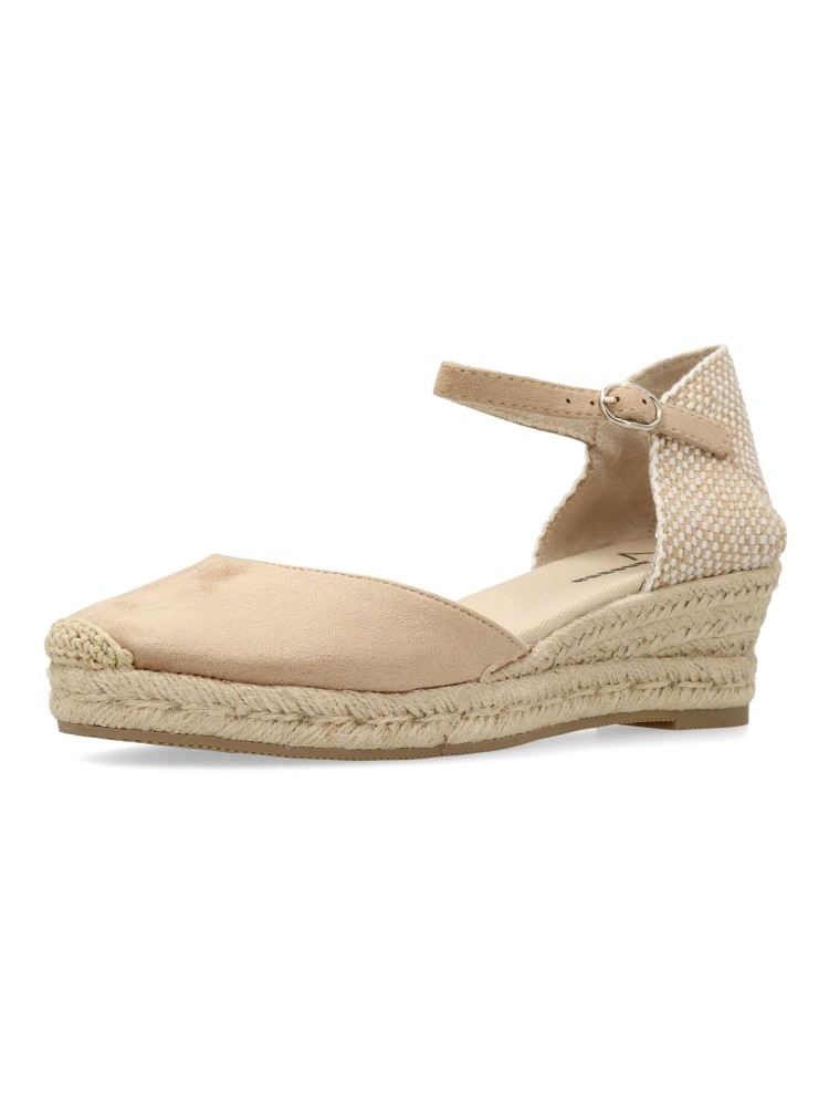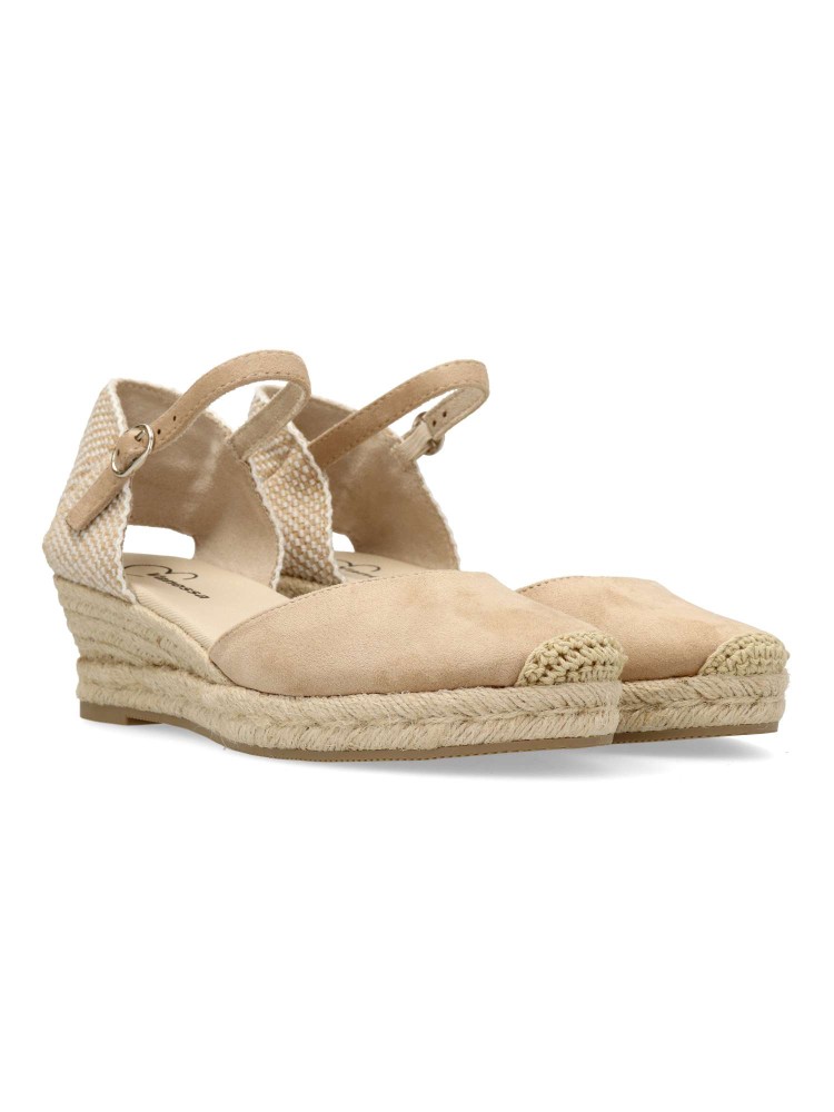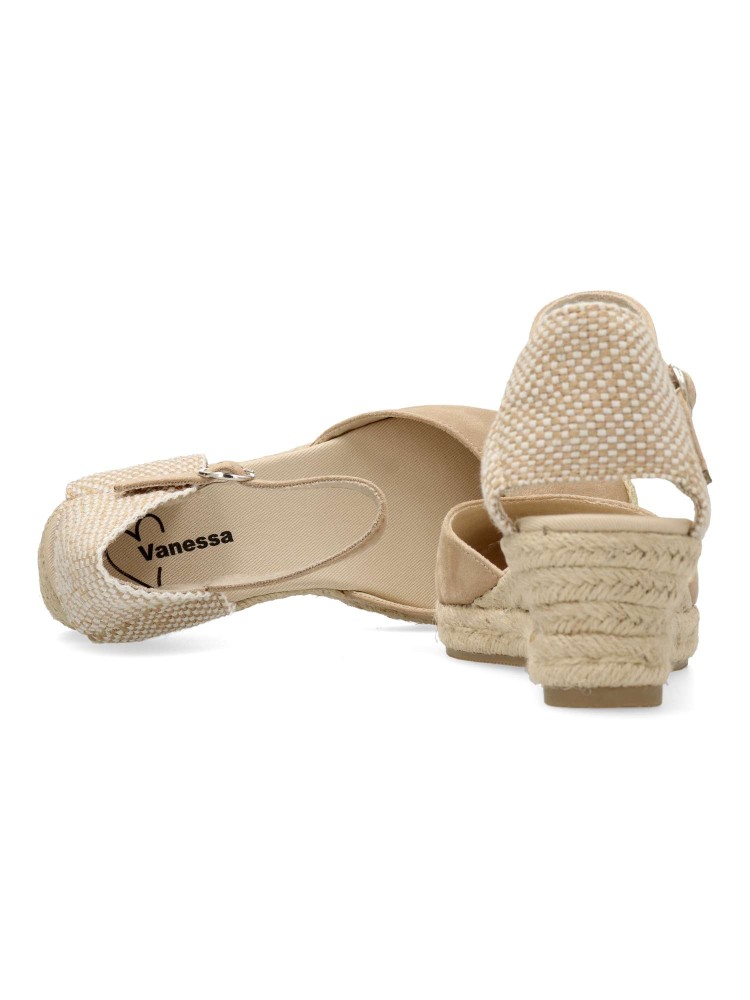 Sandalia esparteña yute de mujer. Cierre de hebilla al tobillo. Alpargata fabricada en textil antelina, con suela de yute sobre goma. Color natural. Cuña de 5 cm. Valenciana clásica, versátil y cómoda, ideal para combinarlas con tus looks de temporada.