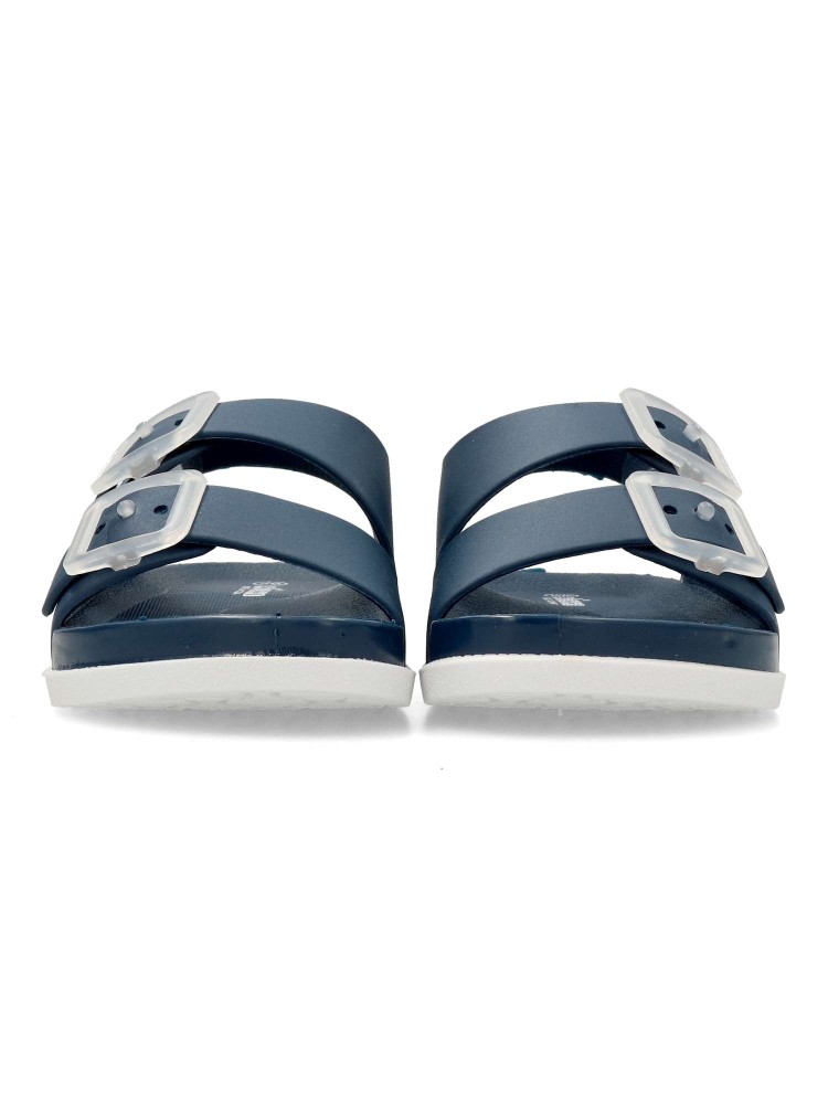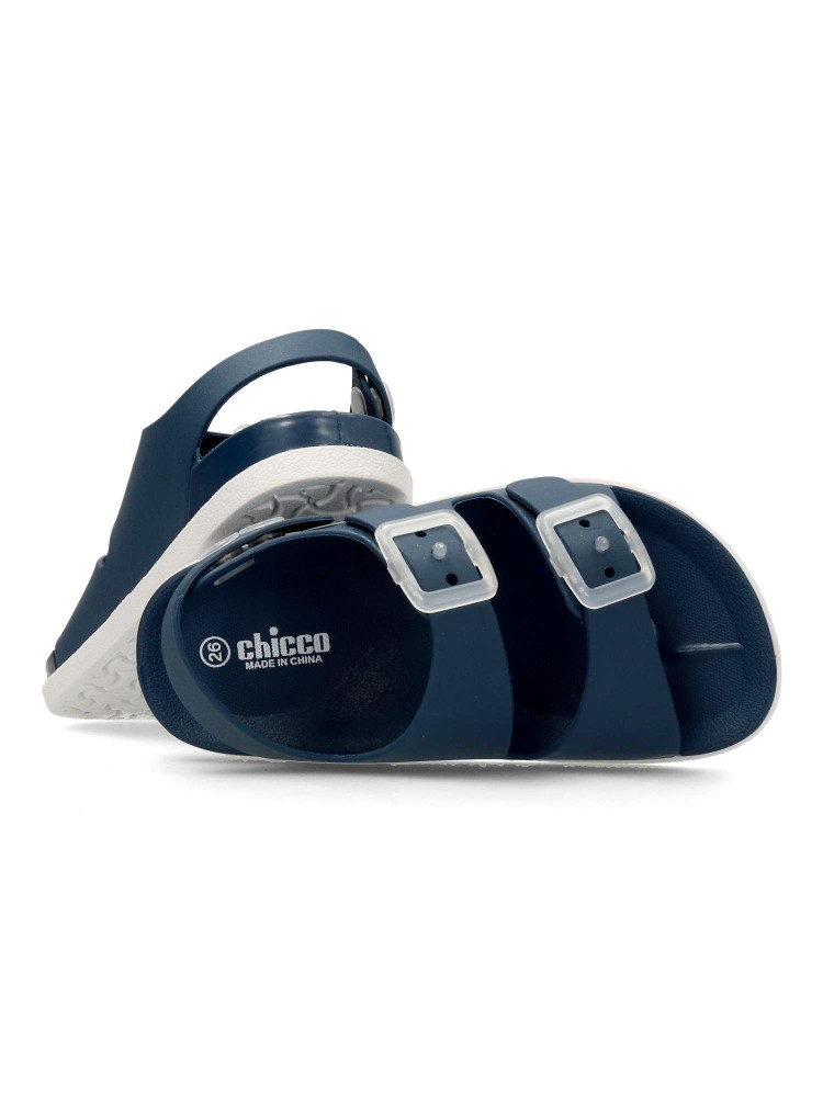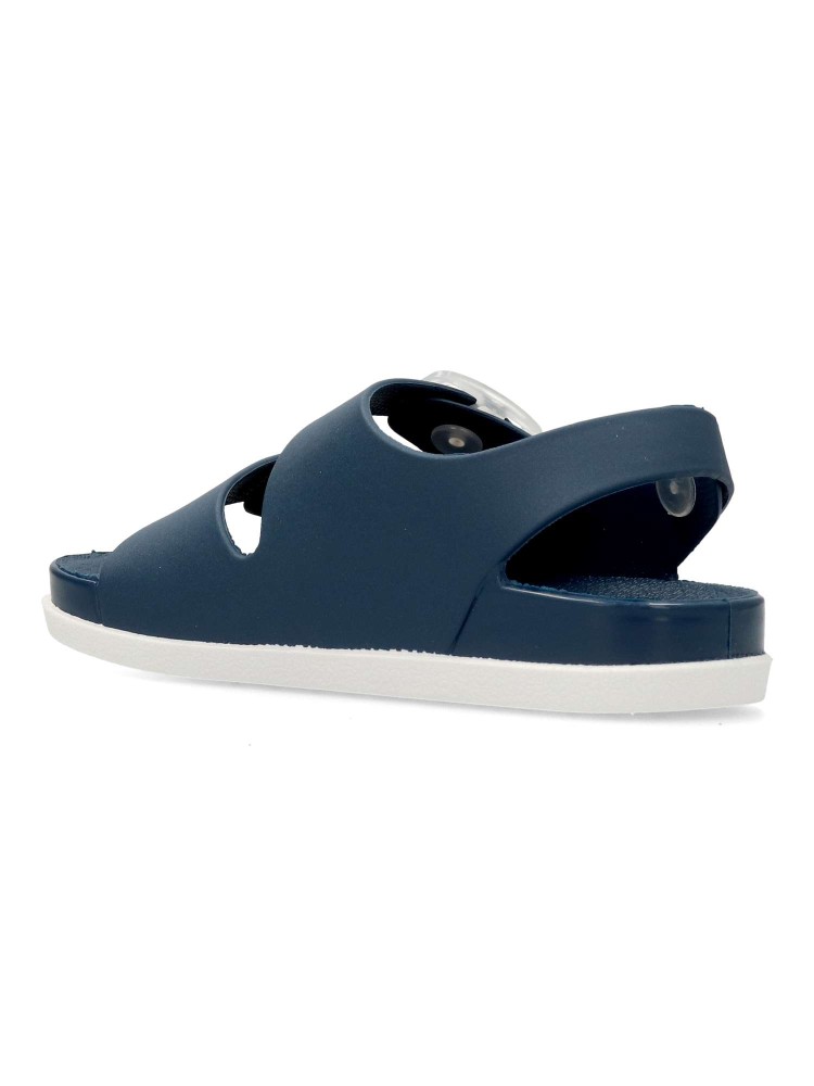 Sandalias de playa en material suave de plástico. Ligero, flexible, comfortable y fácil de poner y quitar. Color azul. Ideal para que los peques la disfruten en la playa y la piscina. Plantilla que sigue el desarrollo natural del arco del pie.