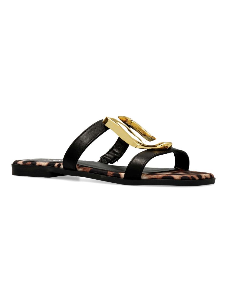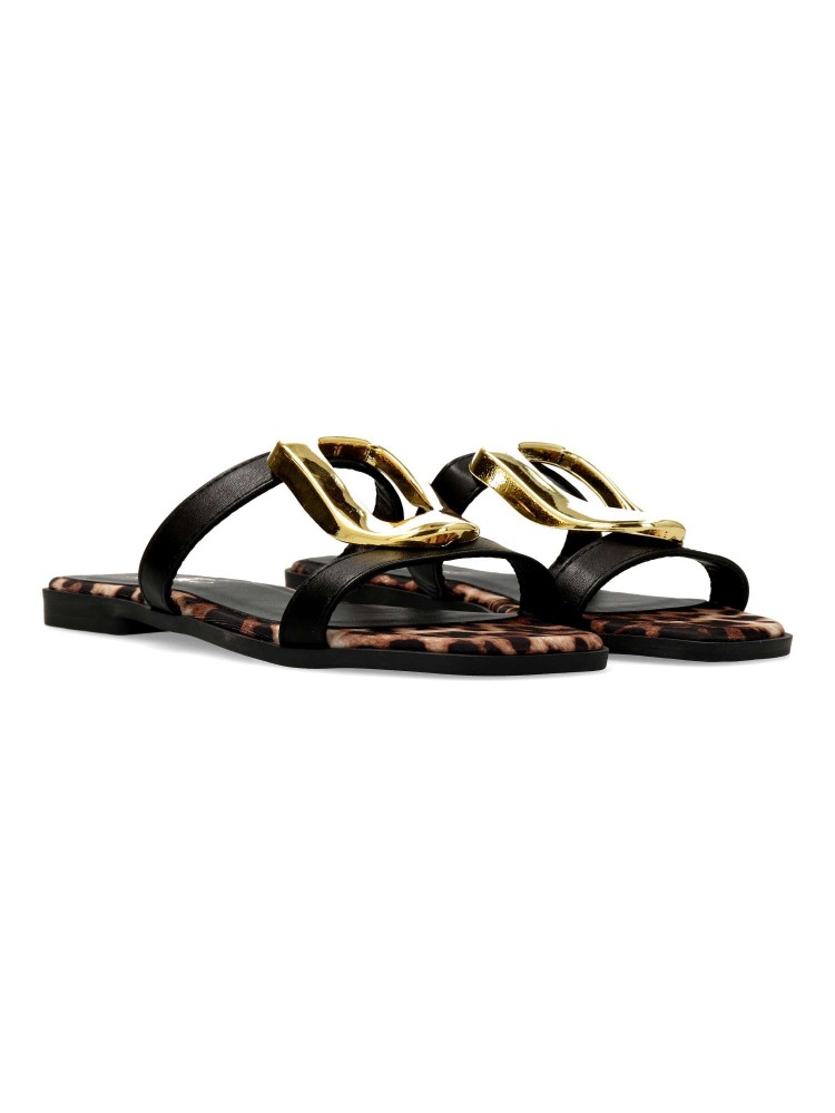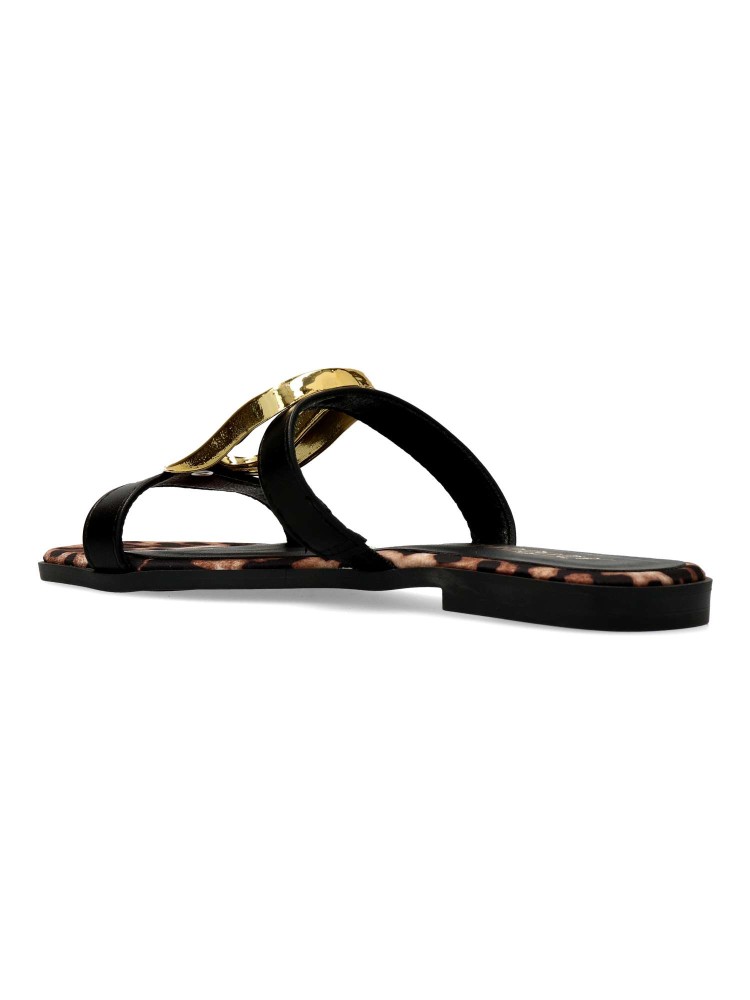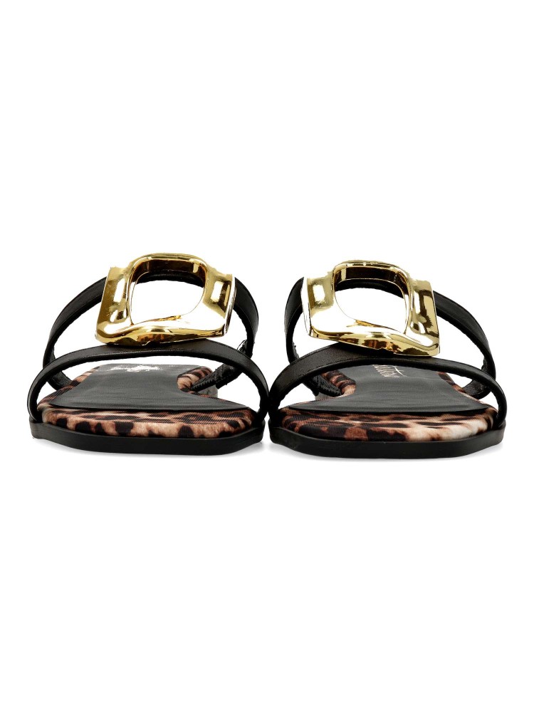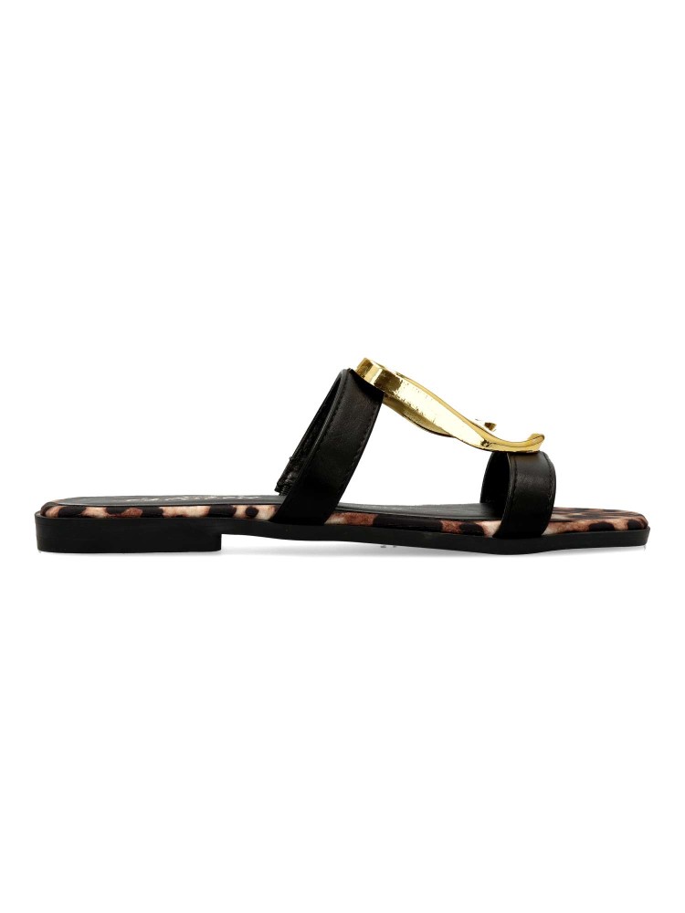 Sandalia plana y cómoda de mujer. Fabricada en material sintético, con detalle metalizado en la pala. Planta acolchada y suela de goma. Diseño versátil, cómodo y elegante, que podrás combinar con todos tus looks de verano. 100% vegano.