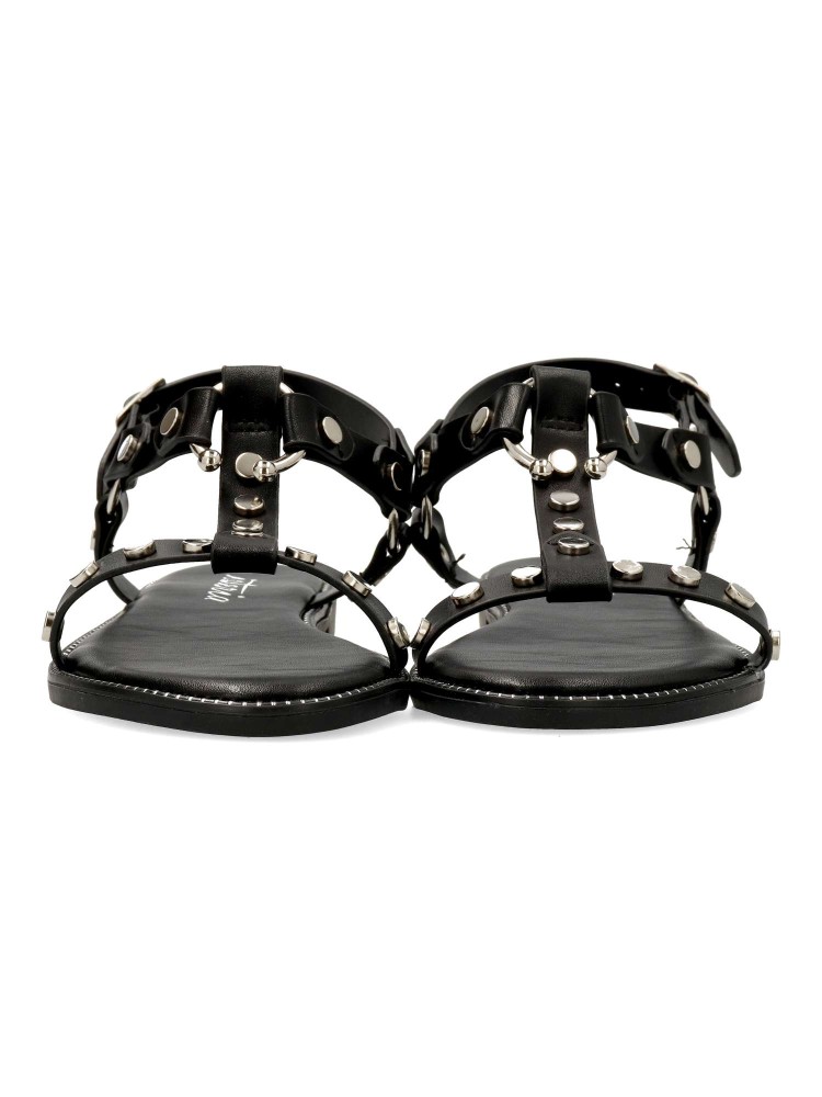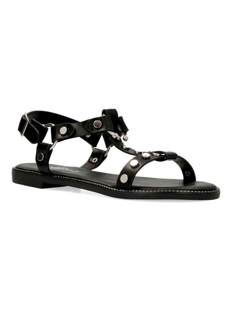 Sandalia de mujer, con ajuste de hebilla. Fabricada en material sintético, con detalle de tachas. Planta acolchada y suela de goma. Diseño versátil, cómodo y elegante, que podrás combinar con todos tus looks de verano. 100% vegano.