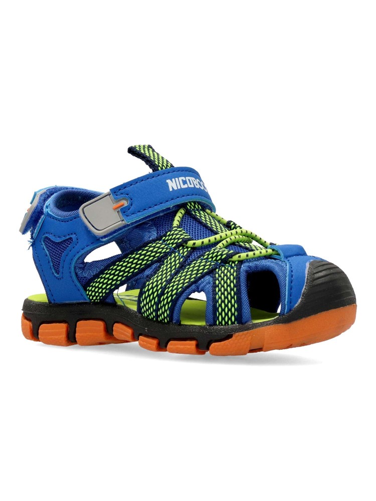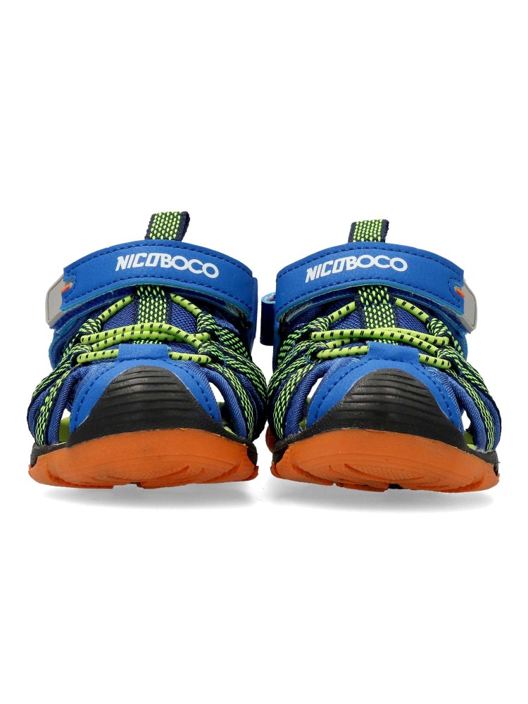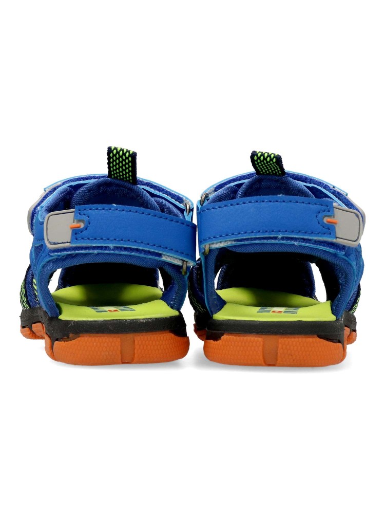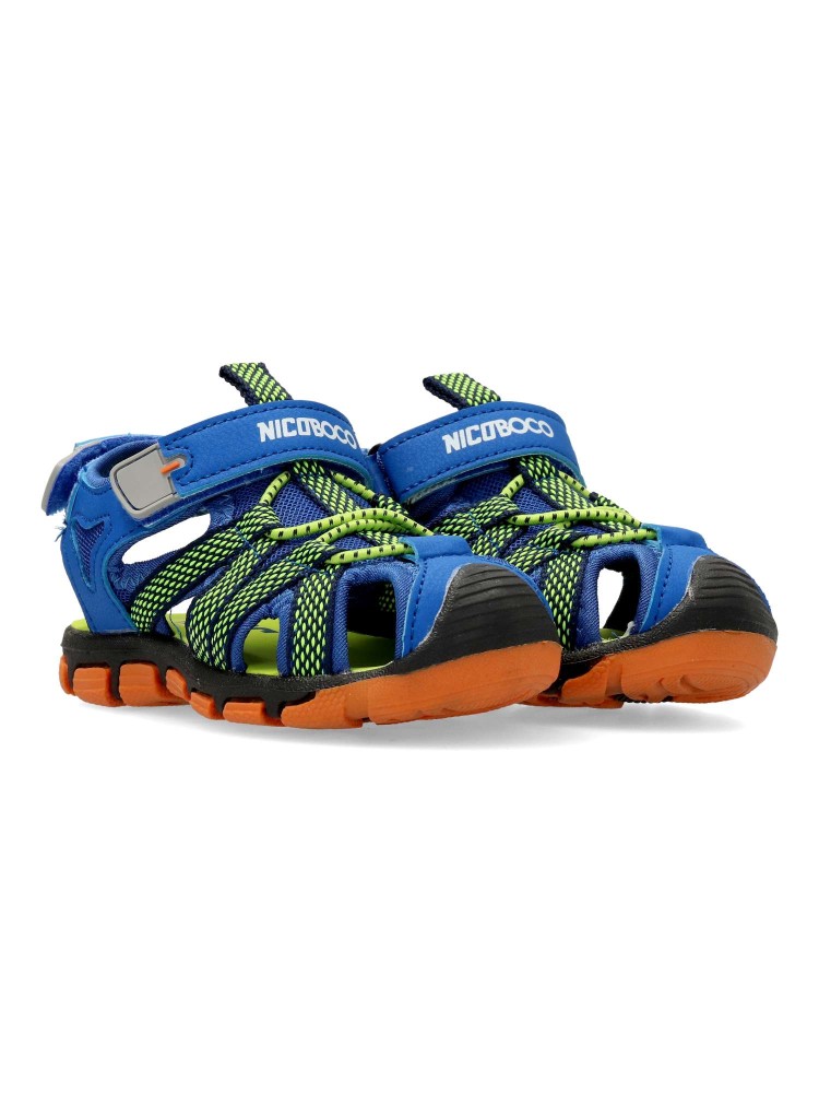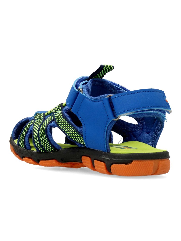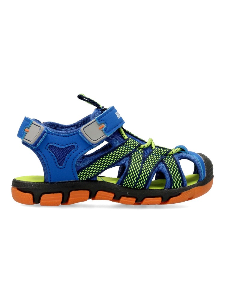 Sandalia cangrejera de niño, con cierre de tiras adherentes y cordón elástico. Fabricada en piel sintética y textil. Suela de goma flexible. Planta acolchada. Modelo ligero, transpirable y con secado rápido, ideales para la playa y piscina.