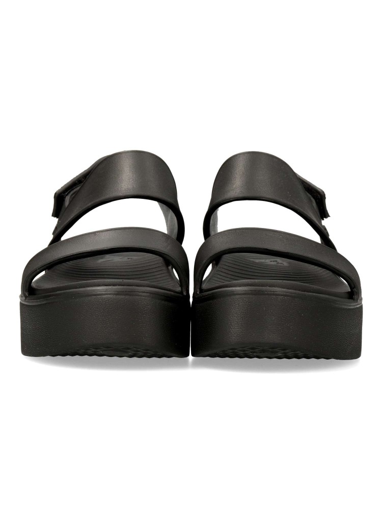 Disfruta del sol con la comodidad de la Skechers Foamies®: Arch Fit® Upbeat - Sunrise. Sandalia de plataforma con banda cruzada, presenta una parte superior transpirable Foamies® con cierre de tira trasera ajustable y plantilla con amortiguación Arch Fit®