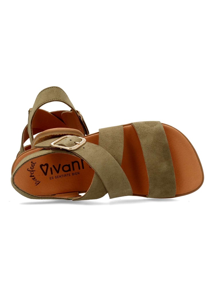 VIVANT Sandalia barefoot piel serraje kaki