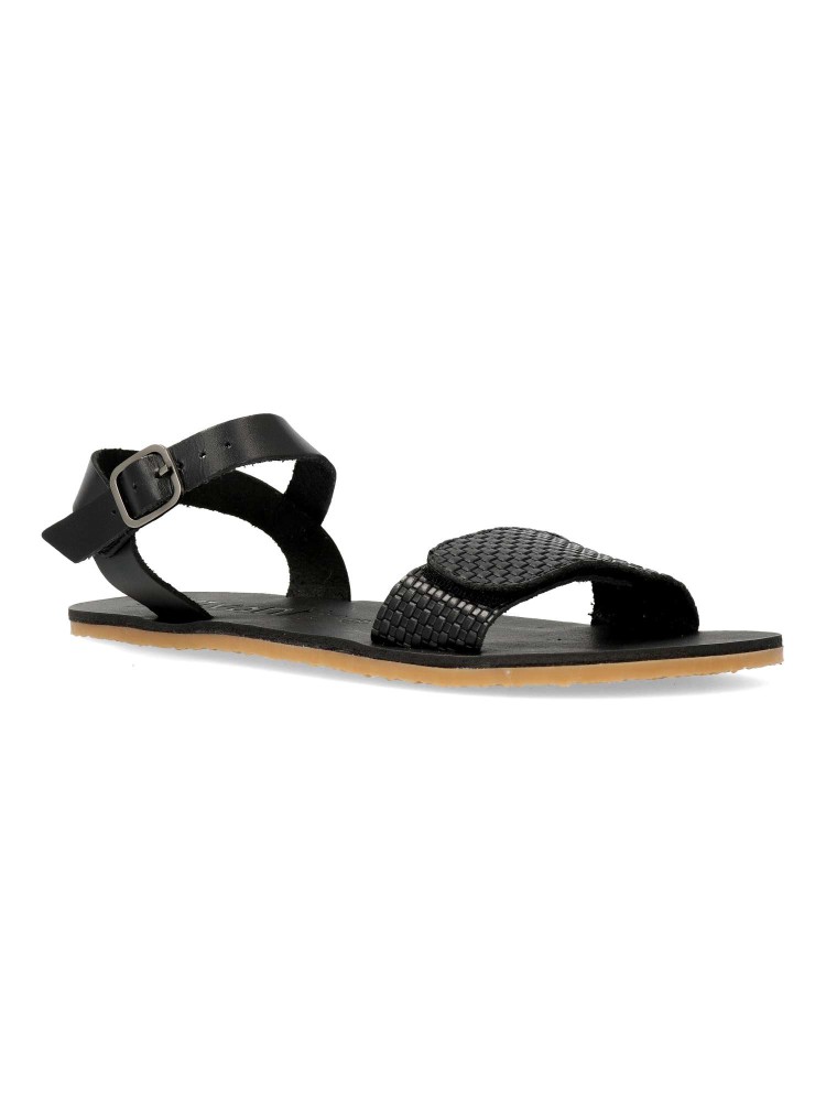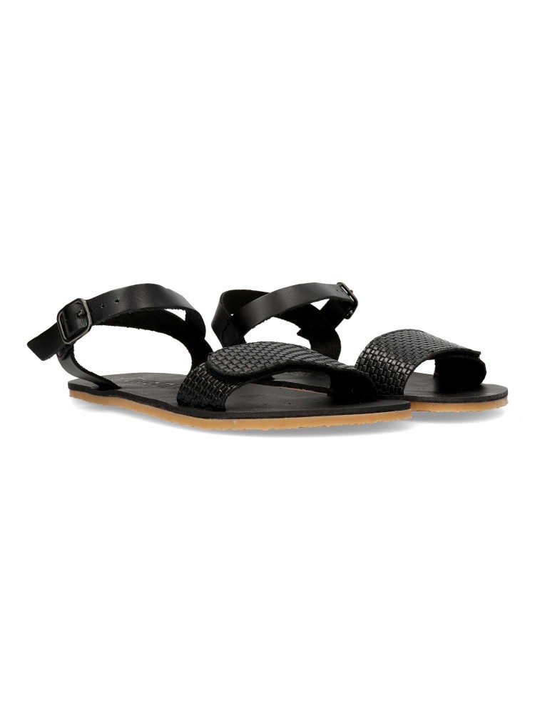 Sandalias barefoot con suela fina, flexible, antideslizante y sin drop. Calzado respetuoso que permite una pisada natural y saludable. Corte en piel cuero texturizada, suave, transpirable y resistente. Horma ancha y plantilla ergonómica.