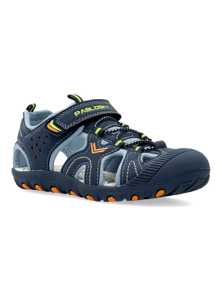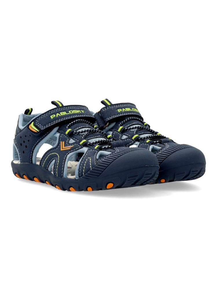 Sandalias niño Pablosky en color marino, con un diseño sport y juvenil, perfectas para el día a día con las que tu hijo podrá jugar, hacer deporte y lo que quiera sin preocupaciones. Tipo cangrejera, con cierre adherente y plantilla amortiguadora.