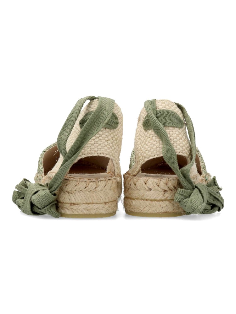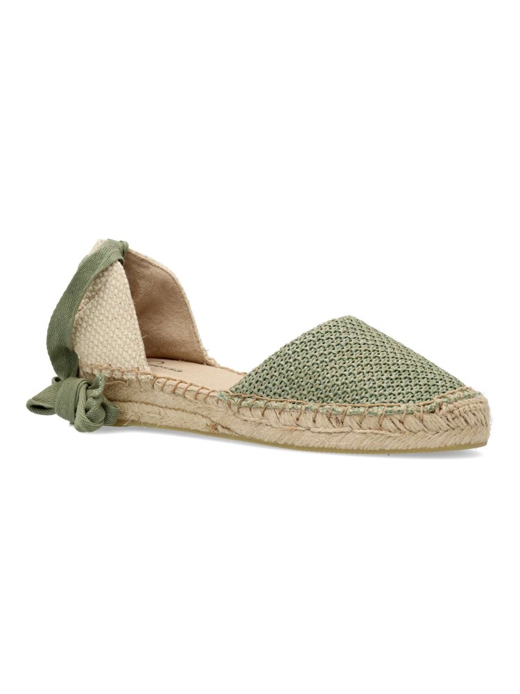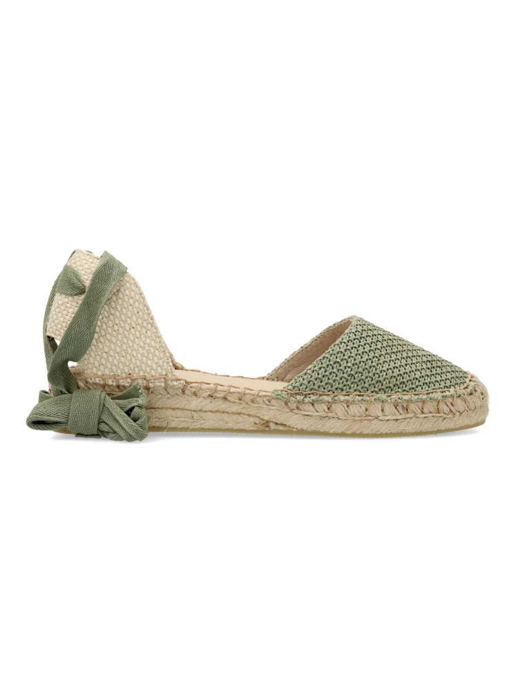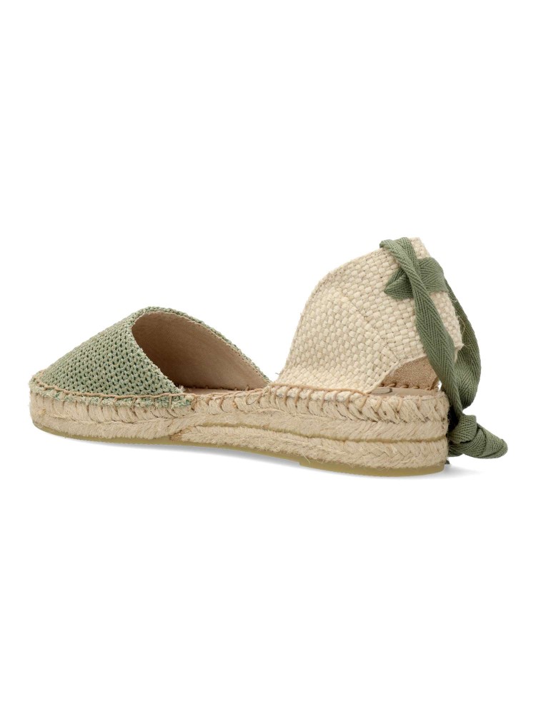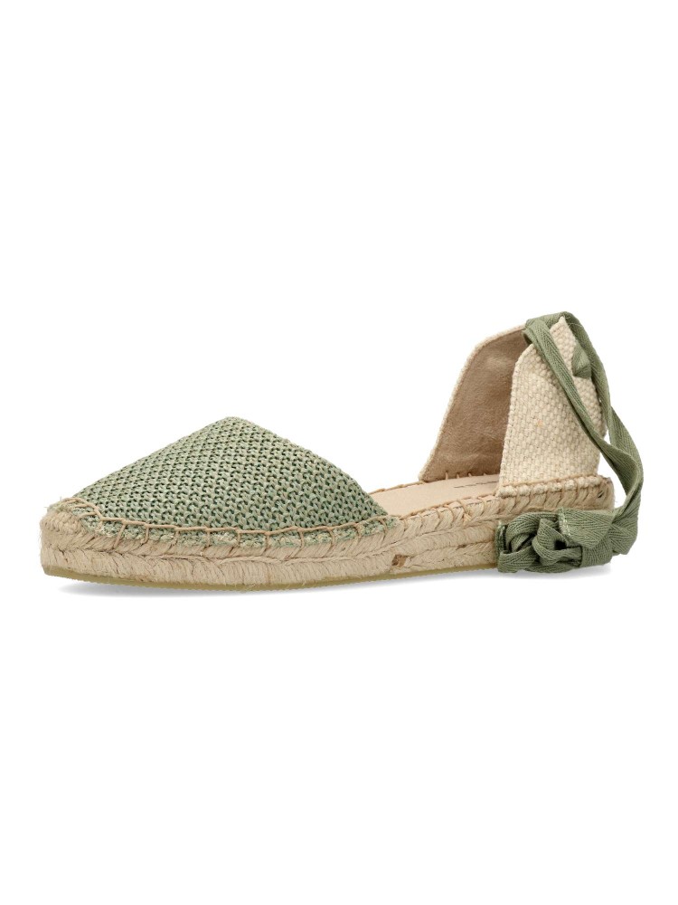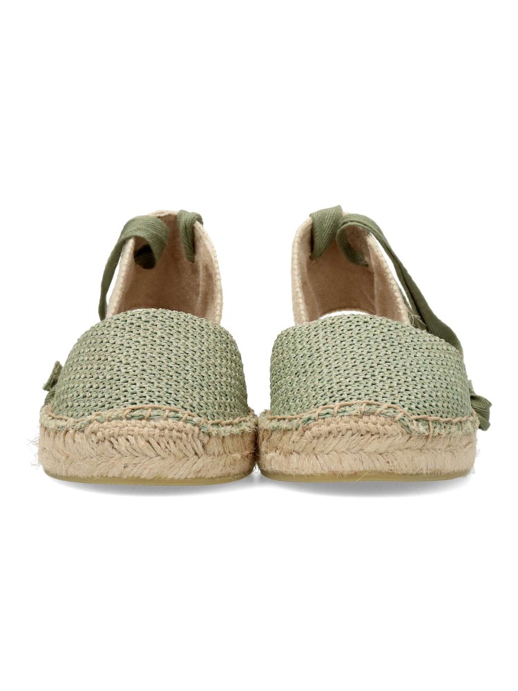 Sandalia esparteña plana de mujer. Cierre de cintas al tobillo. Alpargata con pala de rafia trenzada y suela de yute sobre goma. Planta acolchada. Color aguamar. Una sandalia clásica veraniega, fácil de combinar con todos tus outfits de temporada.