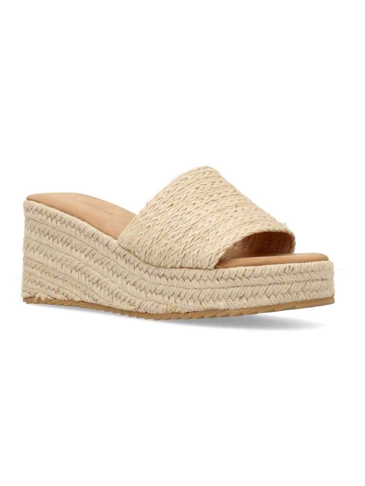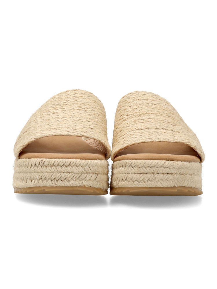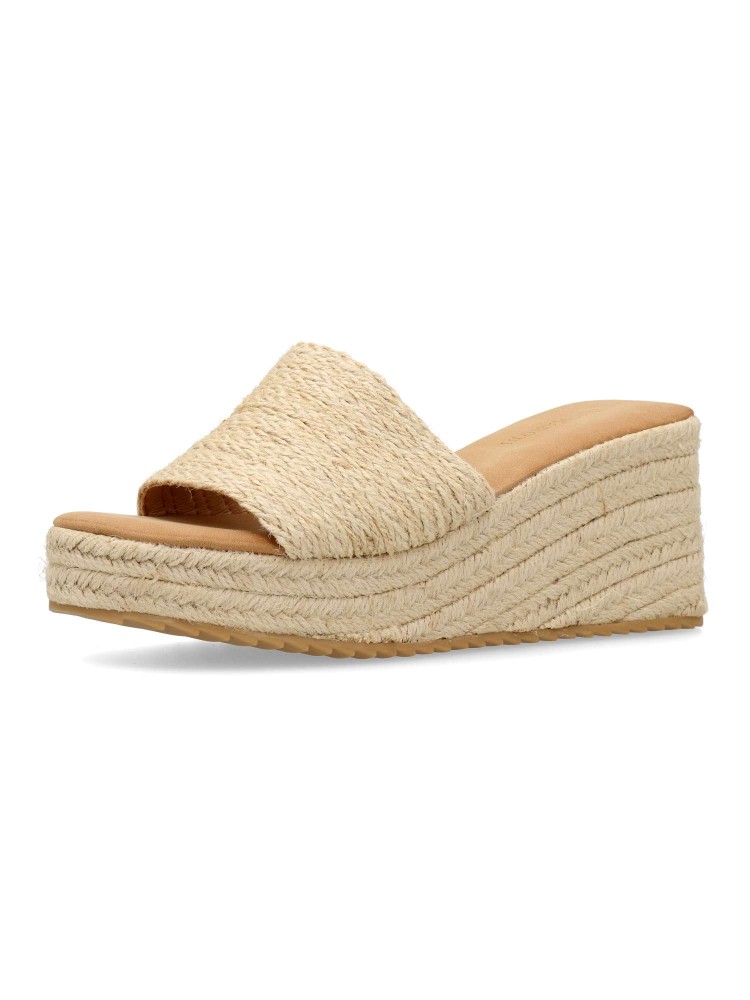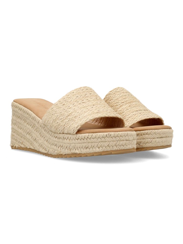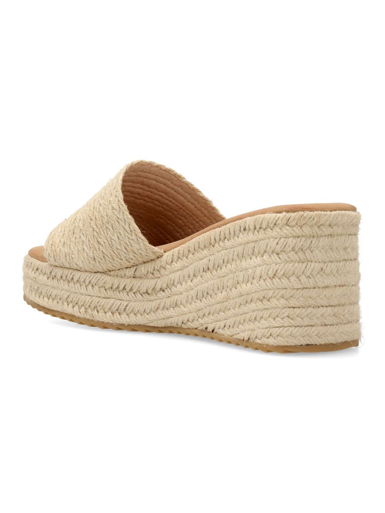 Sandalia alpargata yute de mujer. Modelo con pala de cuerda trenzada. Suela de yute sobre goma. Planta acolchada. Disponible en color beige natural. Altura cuña 7,5 cm. Disño clásico y versátil, ideal para combinar con tus outfits de verano.