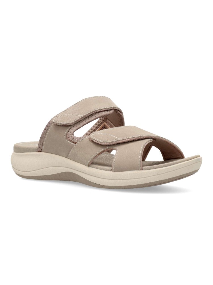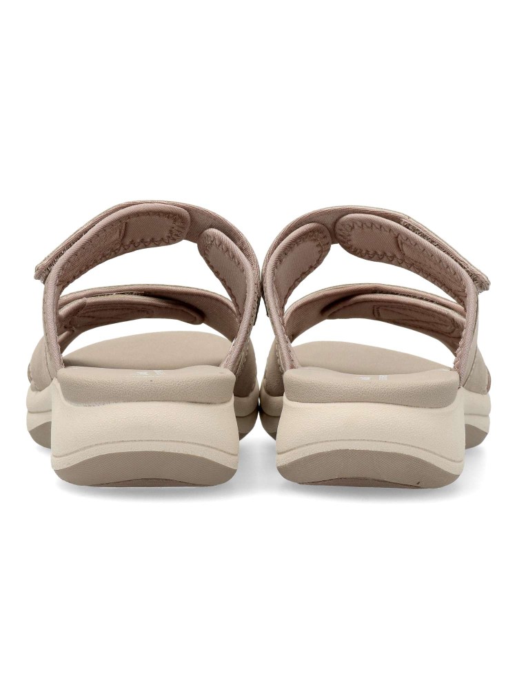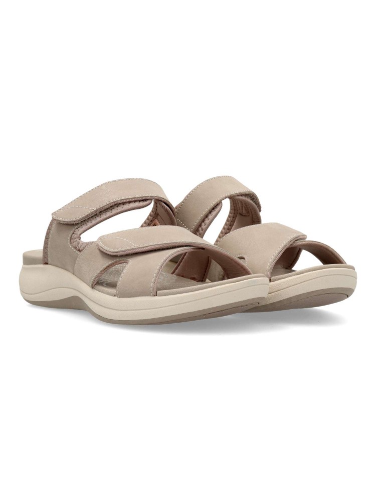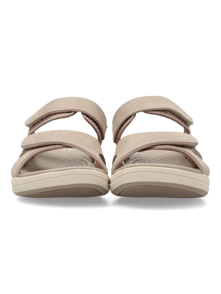 Sandalia confort de mujer con pala de tiras adherentes ajustables. Fabricada en piel sintética, con suela de goma con buen agarre. Plantilla de EVA Super Soft, con mayor absorción de impactos. Ideales para pasear cómoda y libre este verano.