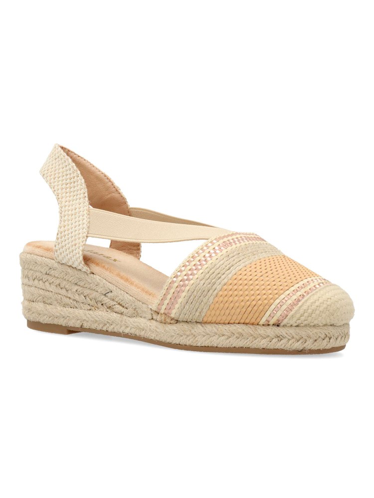 Sandalia alpargata yute de mujer. Elásticos al empeine para un mejor calce. Fabricada en material sintética, con suela de yute sobre goma. Color natural multi. Cuña de 5 cm. Valenciana cómoda, muy fácil de combinar con todos tus looks de temporada.