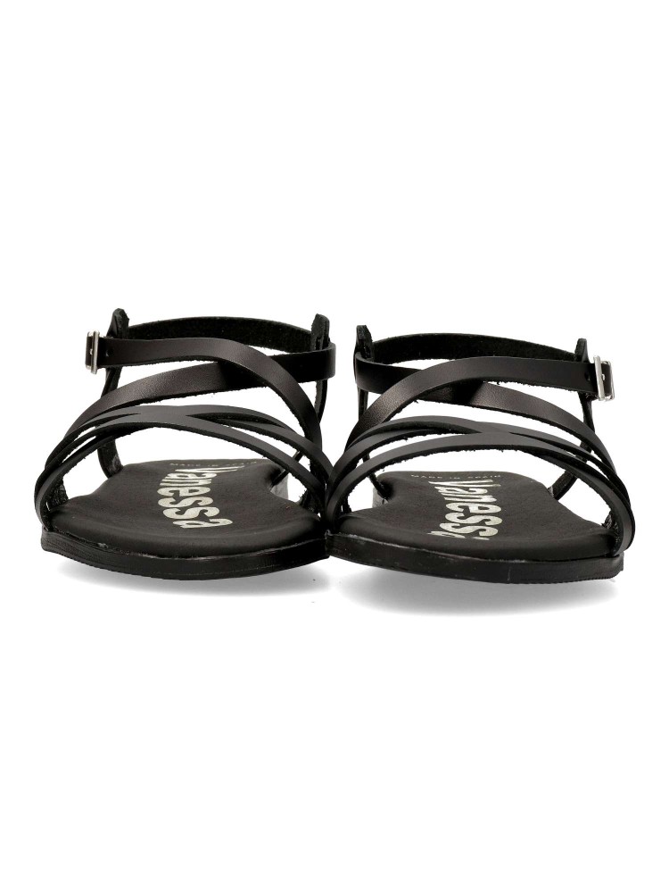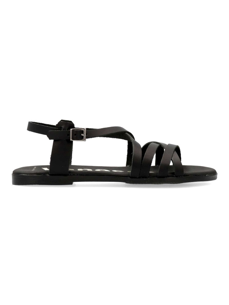 Sandalia cómoda de tiras, para mujer. Fabricado en piel natural, con suela de goma. Cierre de hebilla al tobillo. Forros y plantillas 100% transpirables. Planta acolchada. Agradable sensación de confort y bienestar. Color negro. Hecho en España.