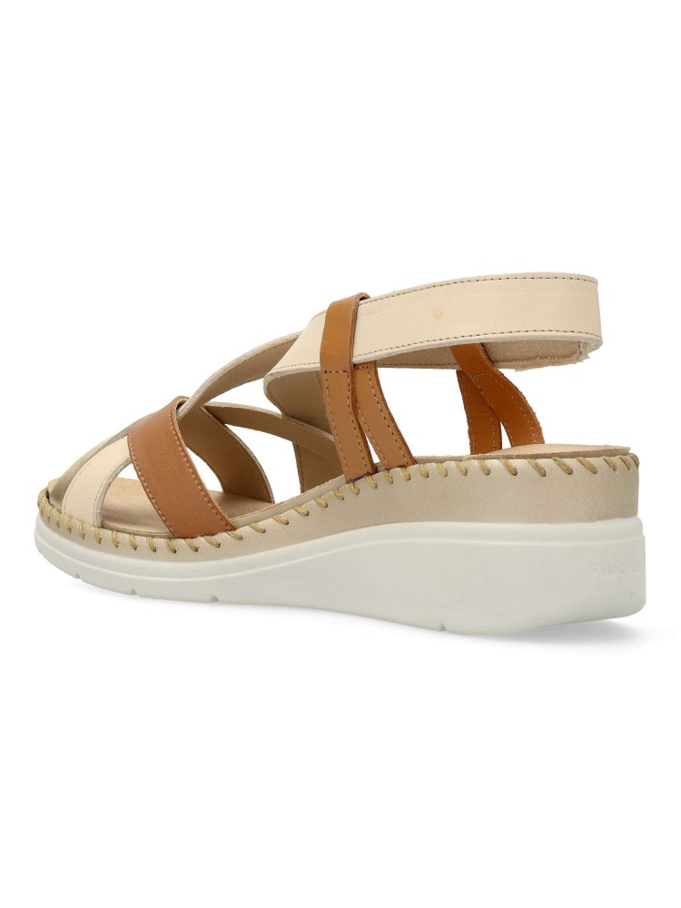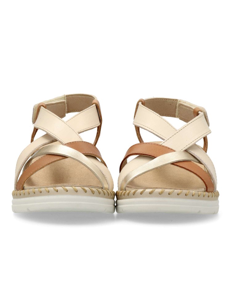 Sandalia de mujer, cómoda, ligera y flexible. Fabricada en piel, con plantilla acolchada y extraíble, que se adaptará a la forma natural de la pisada. Detalle original del cosido a mano. Sandalia que será tu favorita y no podrás separarte de ella.