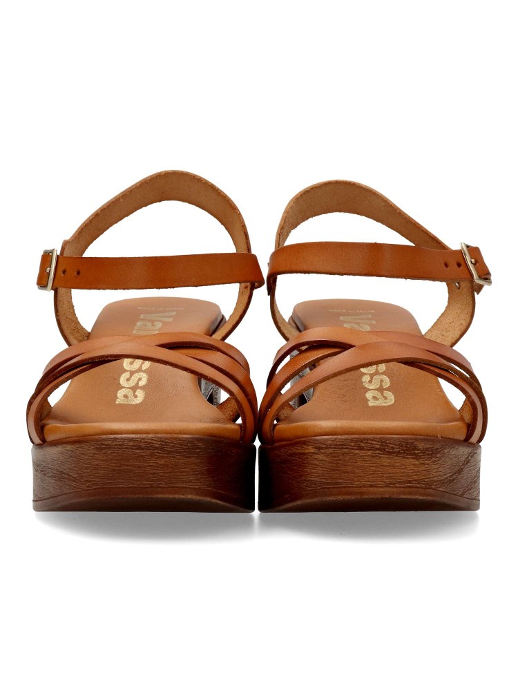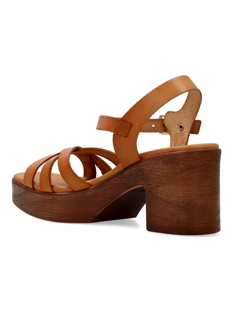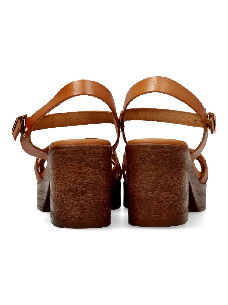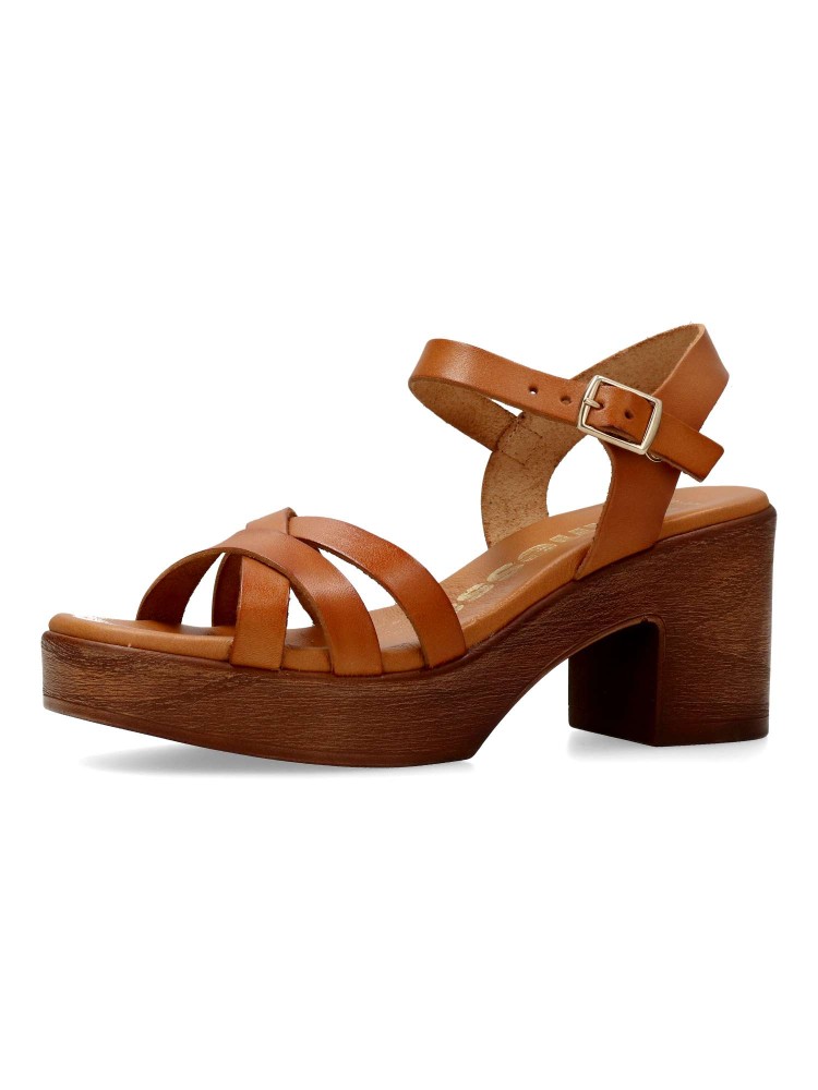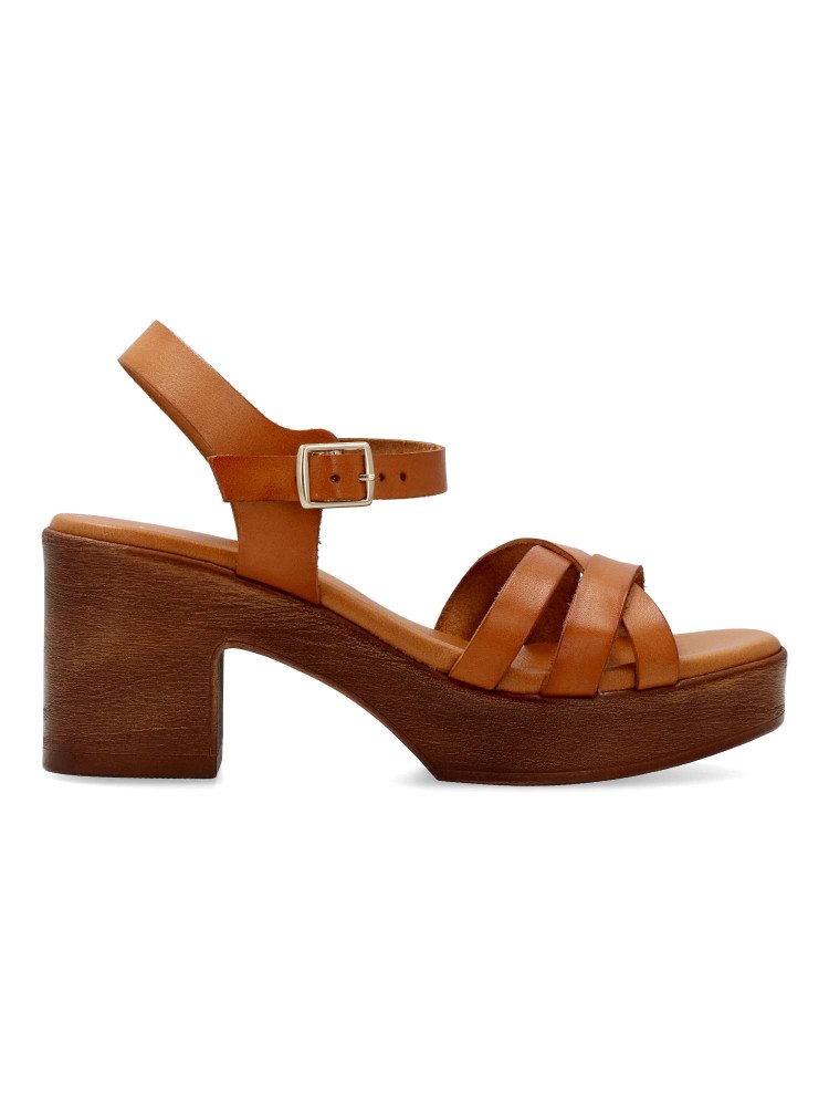 Sandalia cómoda de mujer, con cierre de hebilla. Modelo de tiras cruzadas fabricadas en piel. Planta acolchada. Color avellana. Tacón ancho efecto madera de 7 cm. Plataforma de 2,5 cm. Diseño y confort con tus outfits de verano. Hecho en España.