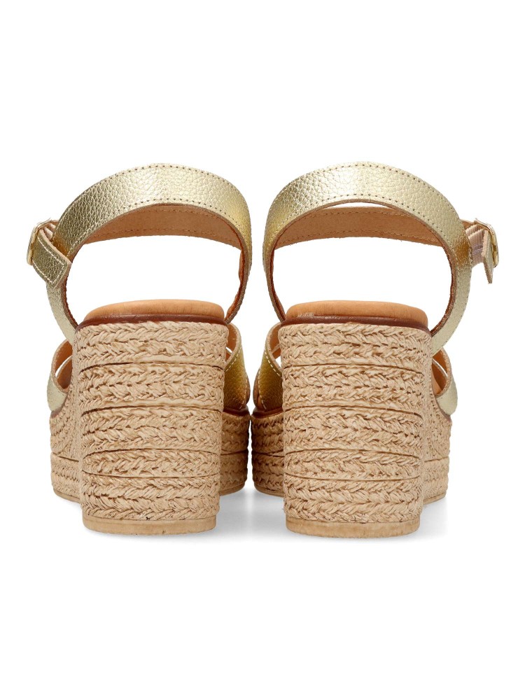 VANESSA Sandalia cuña efecto yute piel metalizada