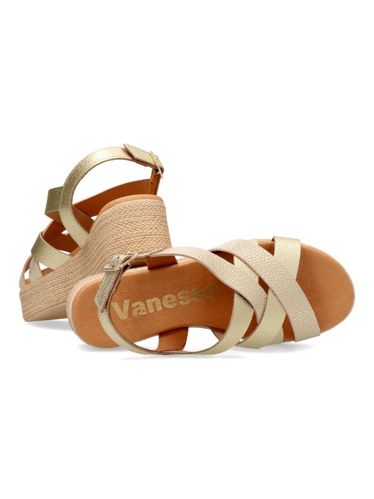 VANESSA Sandalia piel metalizada tiras cruzadas