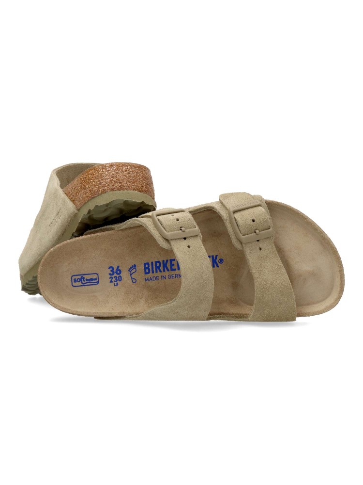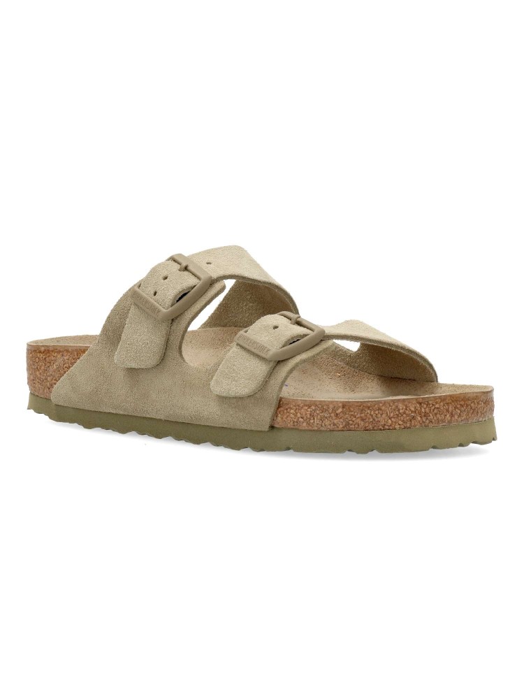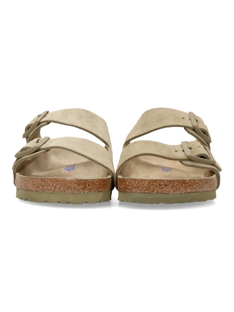 Sandalia bio cómoda, con plantilla blanda original BIRKENSTOCK; anatómica. Color verde kaki. Ajuste con dos hebillas al empeine. Fabricado en piel de ante con suela EVA. Ideal para dar tus paseos en verano con el máximo confort. Made in Germany.