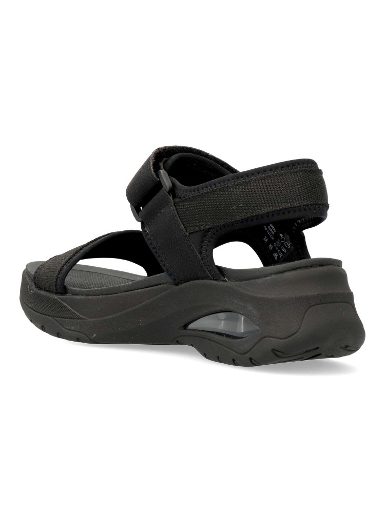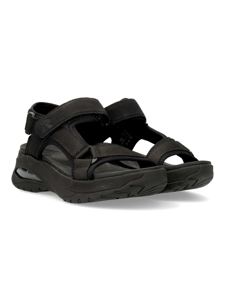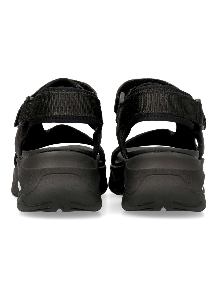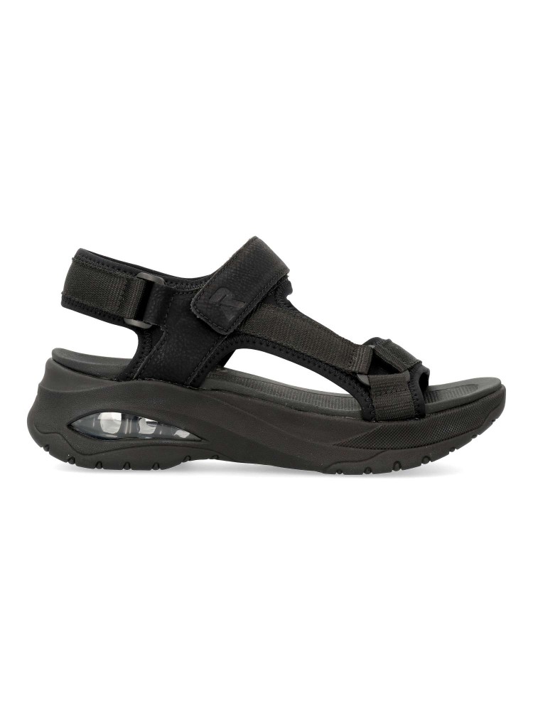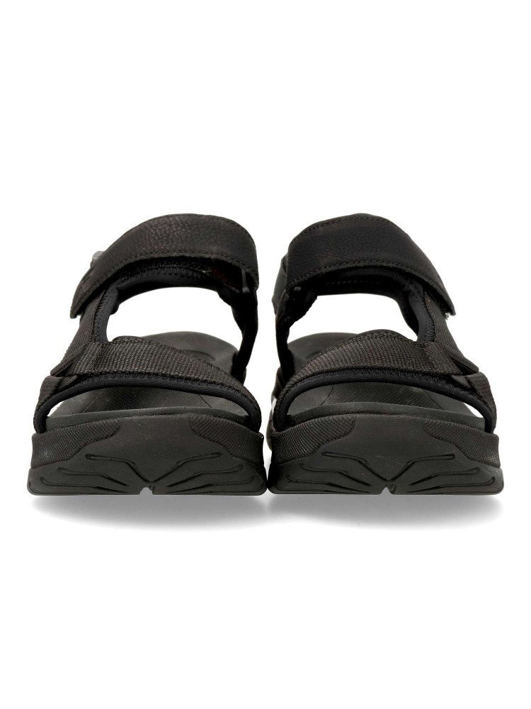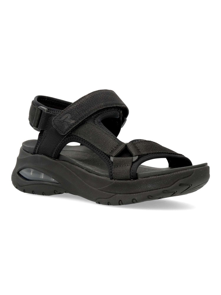 Sandalia de mujer con cierre adherente. Modelo cómodo fabricado en sintético y textil, con suela de goma. Color negro. Modelo cómodo con cámara de aire y máxima absorción de impactos. Planta acolchada. Una sandalia confort para verano.
