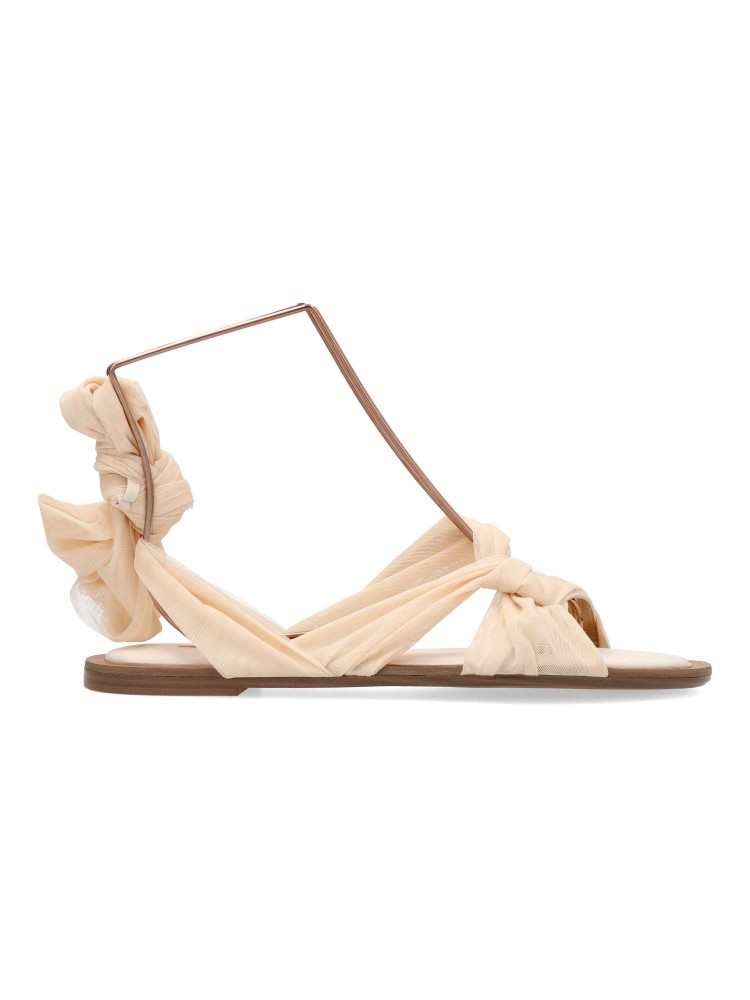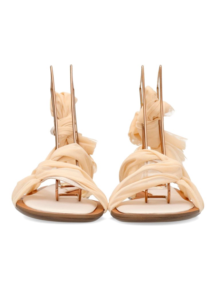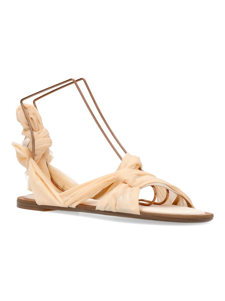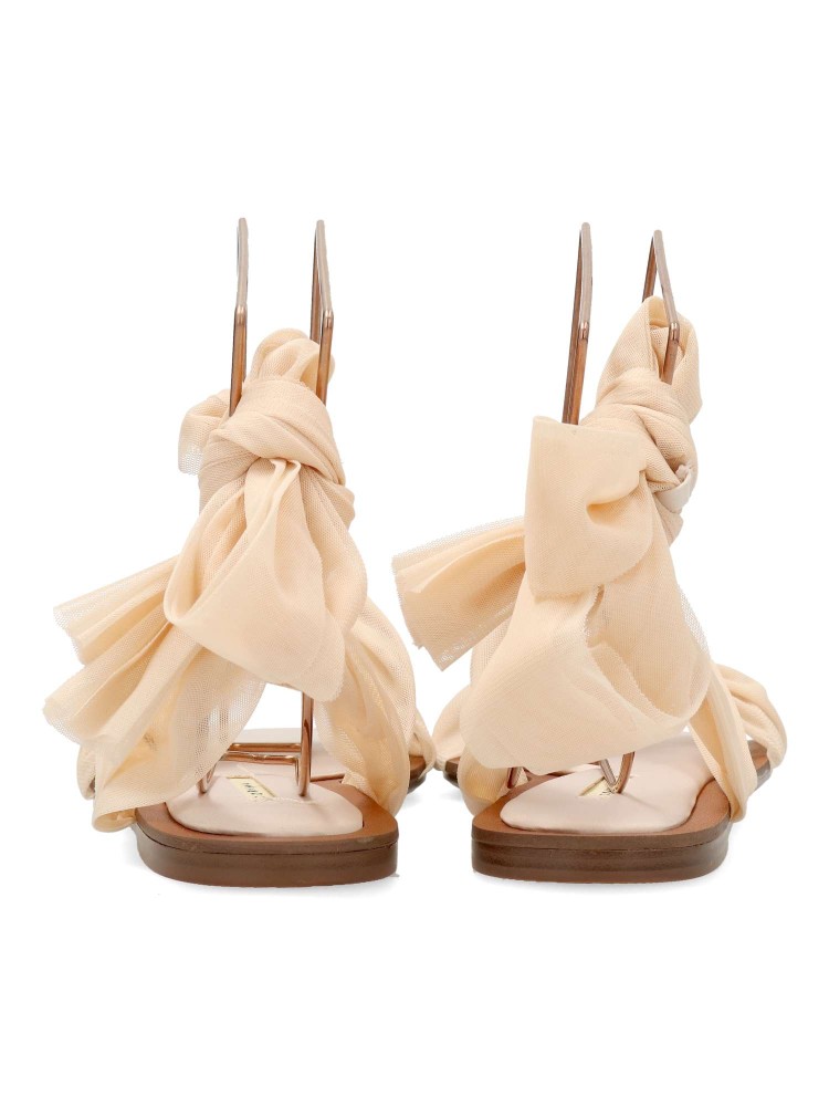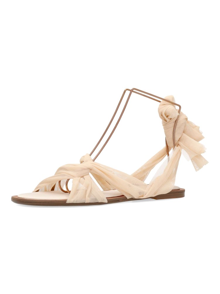 Sandalia plana de chica. Modelo de tiras con cintas de rejilla sujetas al tobillo. Planta acolchada. Disponible en color nude. Diseño cómodo, fresco y elegante, ideales para lucirlas este verano.