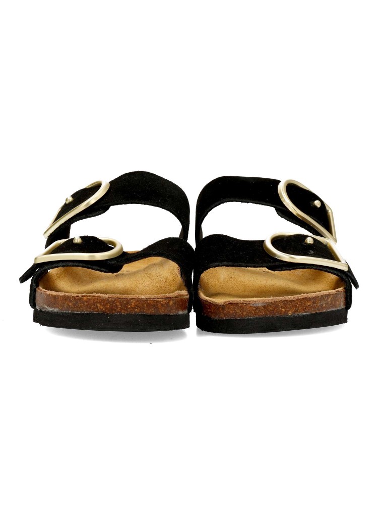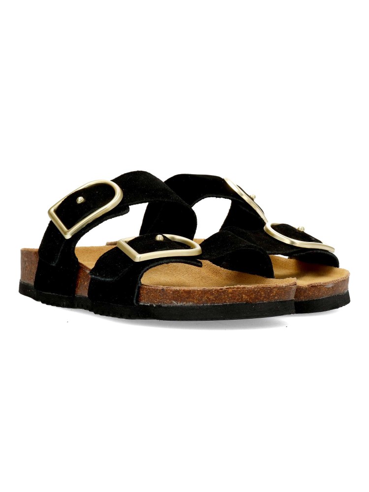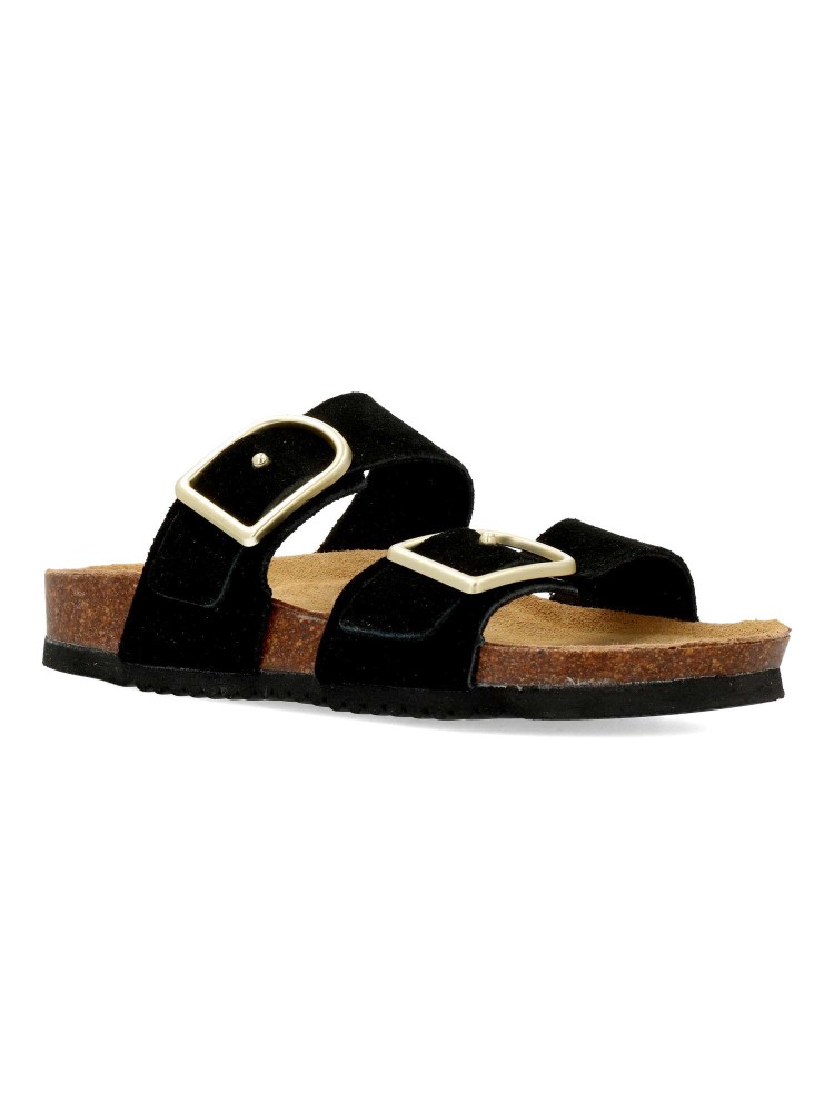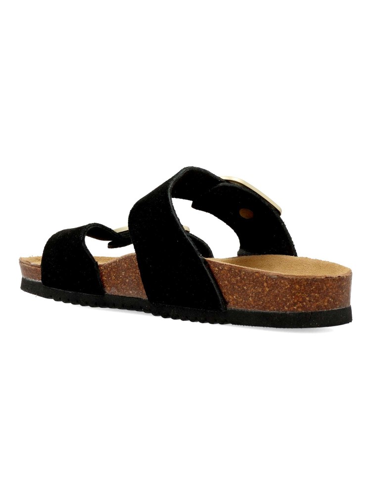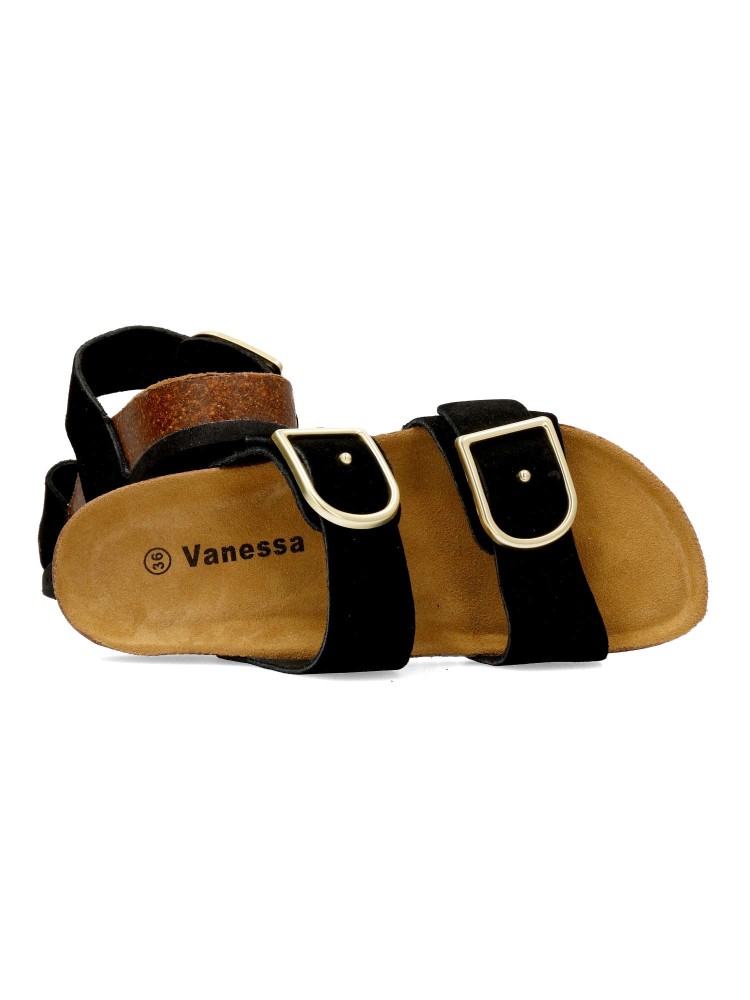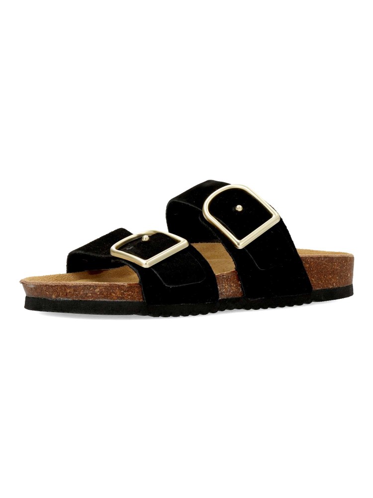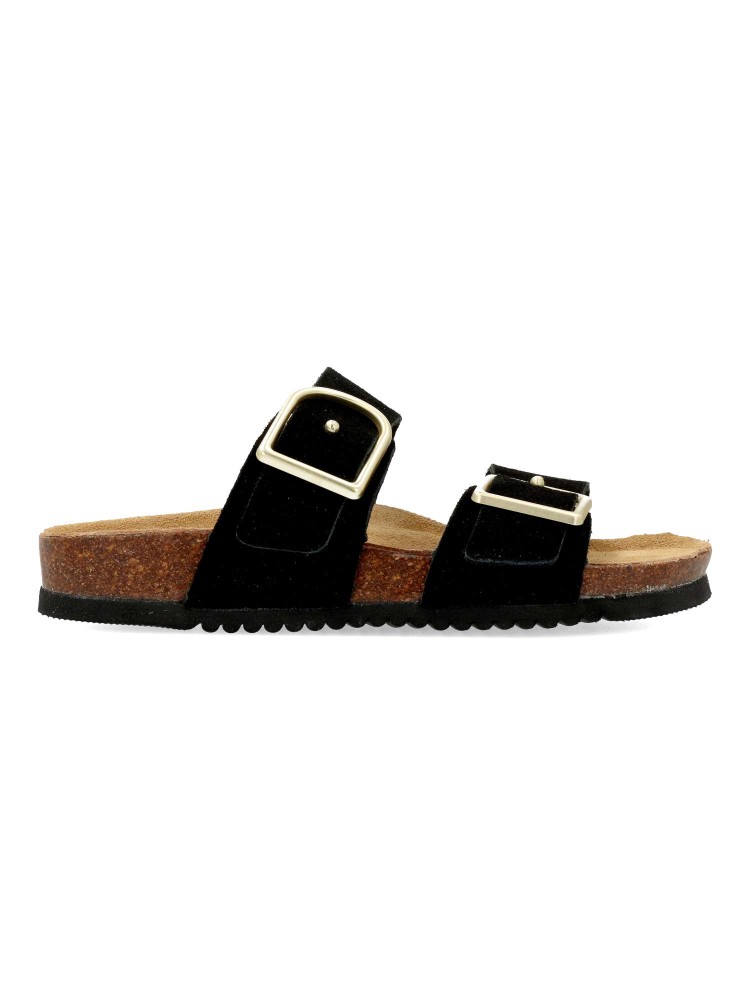 Sandalia de mujer tipo bio. Pala ajustable con doble hebilla. Modelo cómodo, fabricado en piel, con suela EVA. Planta anatómica de piel acolchada. Color negro. Modelo fresco y versátil, con los que disfrutarás de tus paseos de verano.