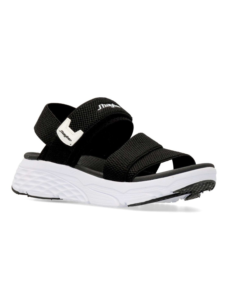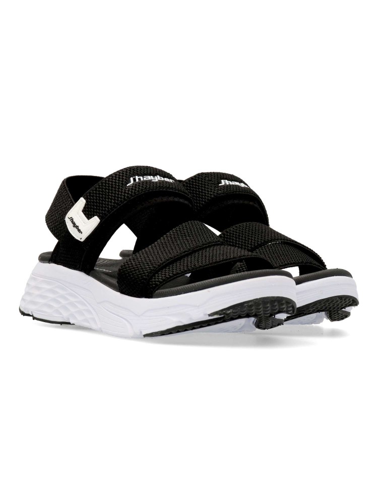 Sandalia deportiva de mujer, estilo casual. Modelo cómodo, fabricado con tiras elásticas y suela anatómica de goma eva. Sandalia ligera y flexible, con cierre adherente. Color negro. Diseño y confort para tus paseos de verano. OELSA.
