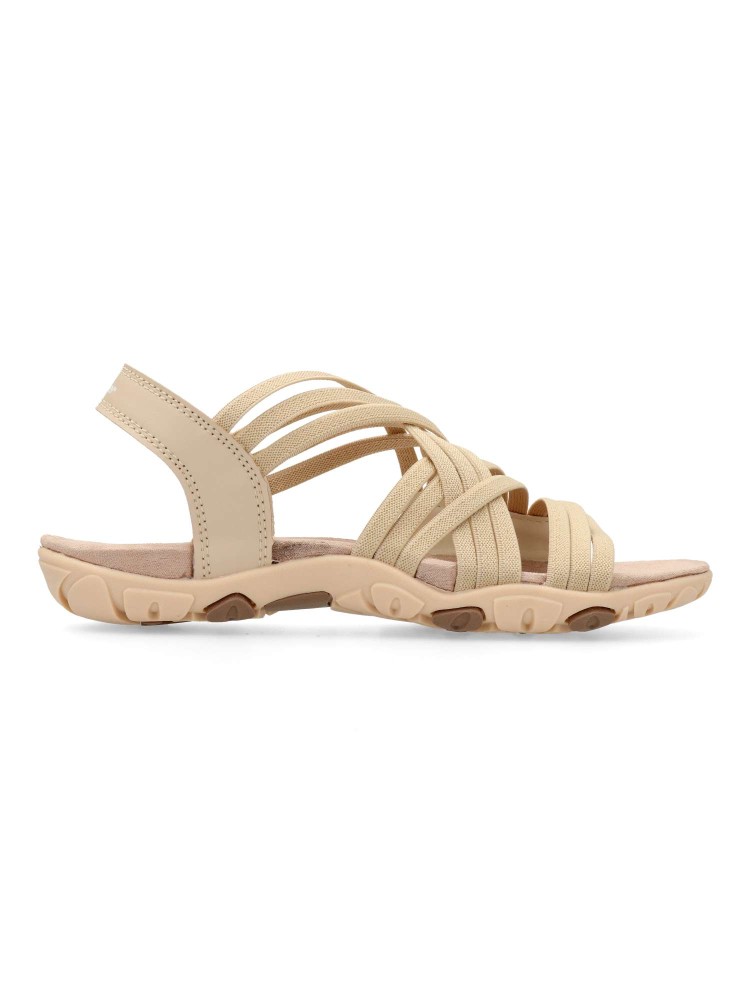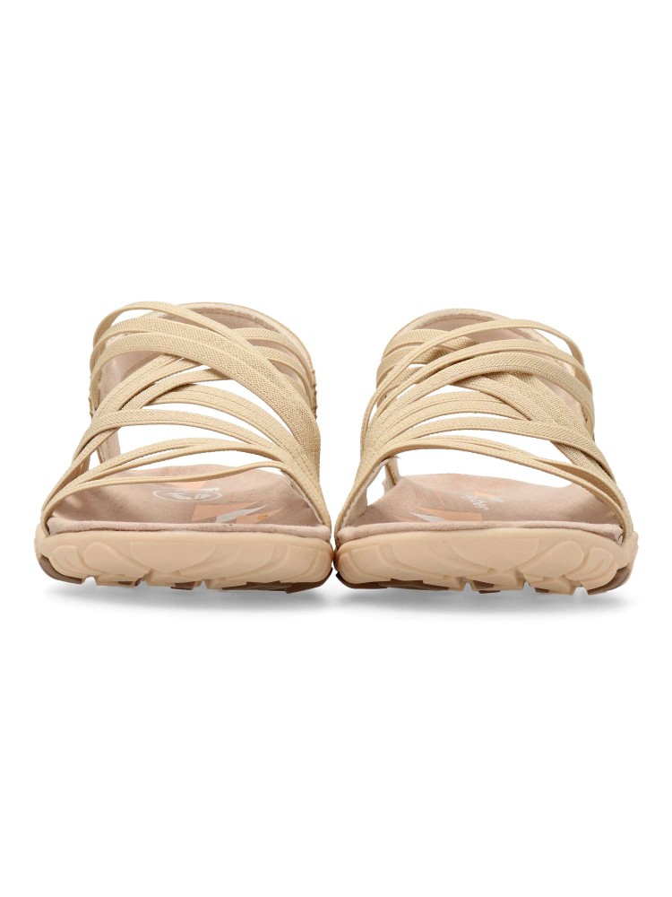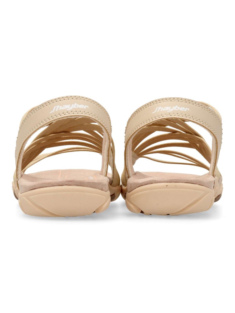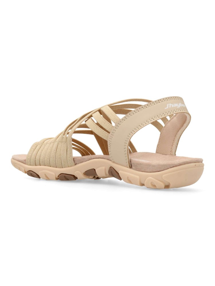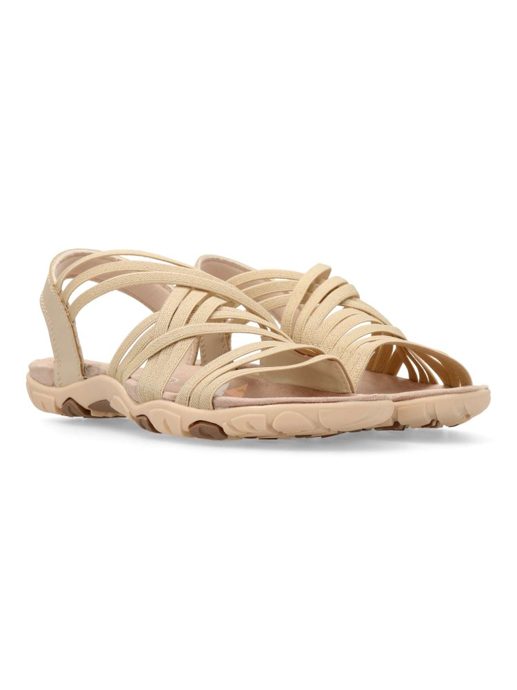 Sandalia deportiva de mujer, estilo casual. Modelo cómodo, fabricado con tiras elásticas y suela de goma ligera y flexible. Planta confort acolchada. Disponible en color beige. Una sandalia muy cómoda, que no te querrás quitar en todo el verano.
