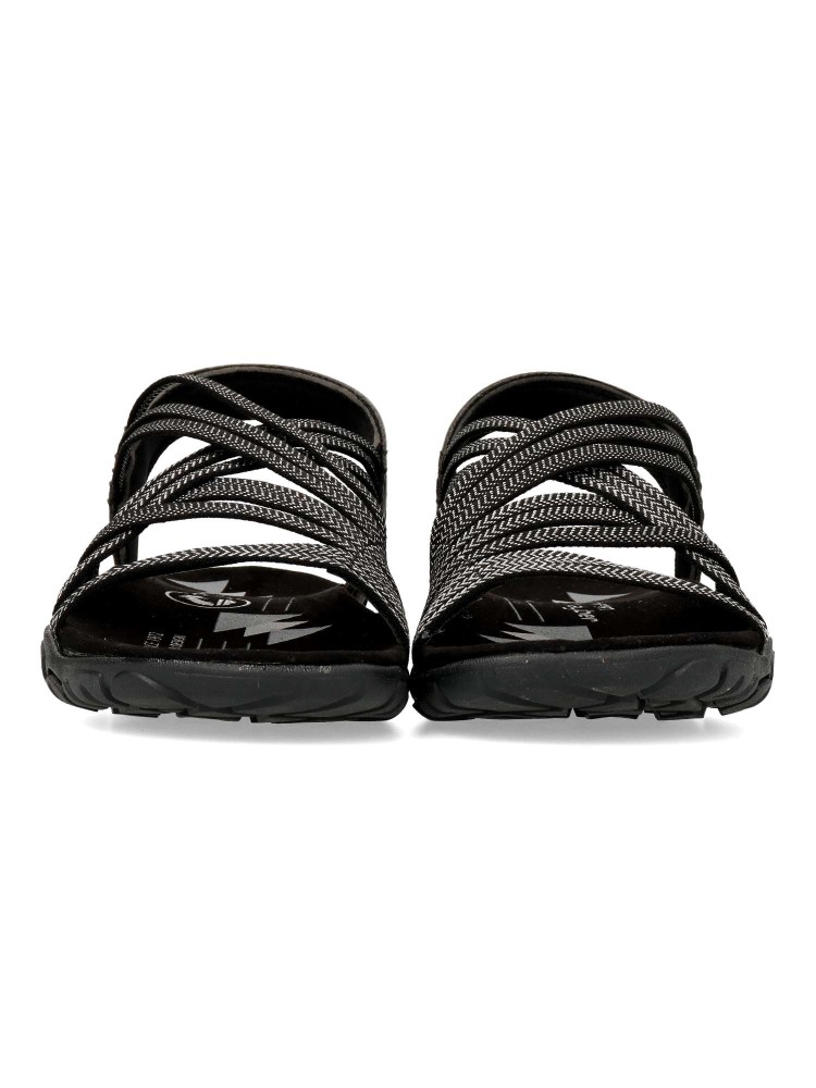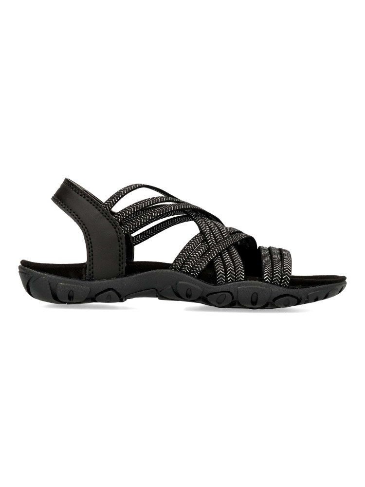 Sandalia deportiva de mujer, estilo casual. Modelo cómodo, fabricado con tiras elásticas y suela de goma ligera y flexible. Planta confort acolchada. Disponible en color negro. Una sandalia muy cómoda, que no te querrás quitar en todo el verano.