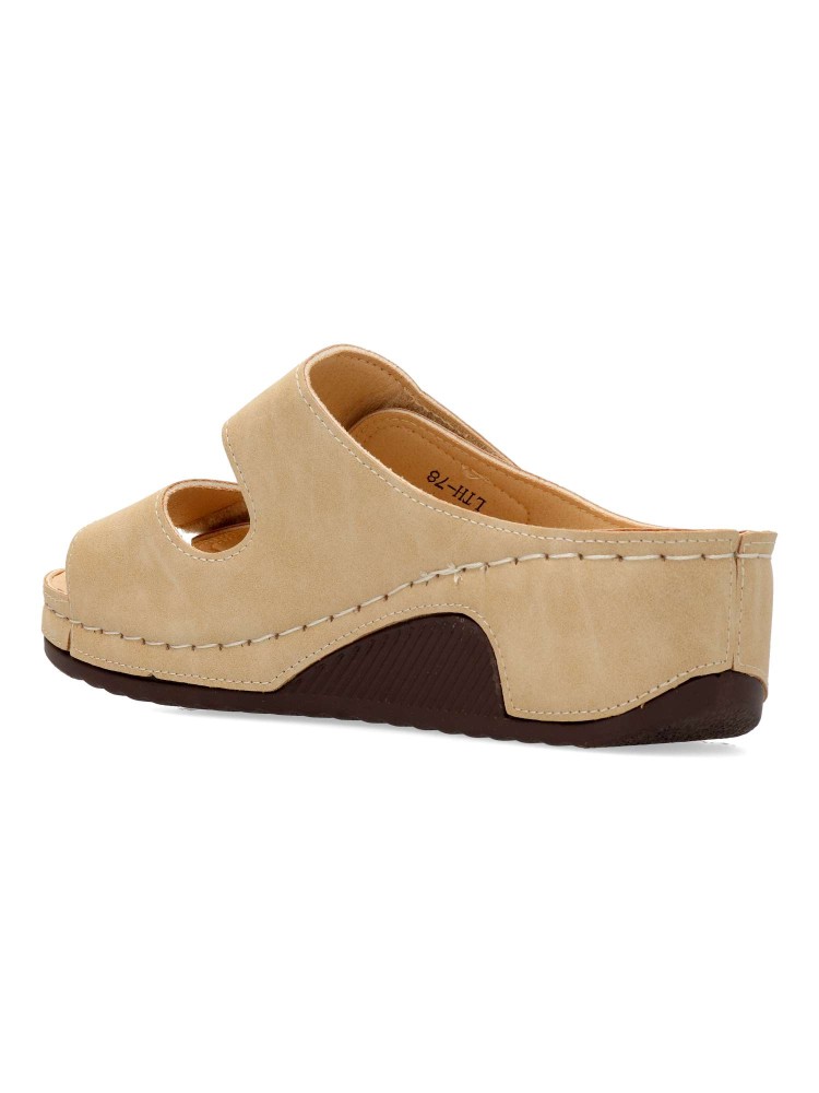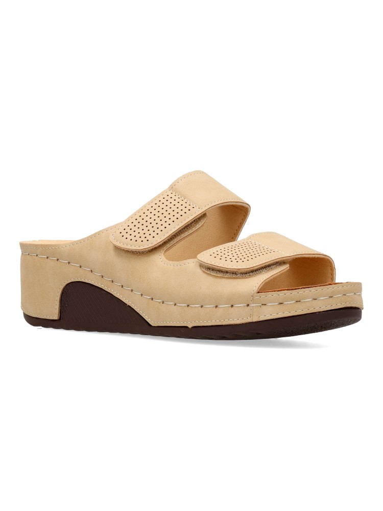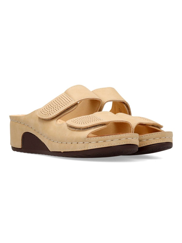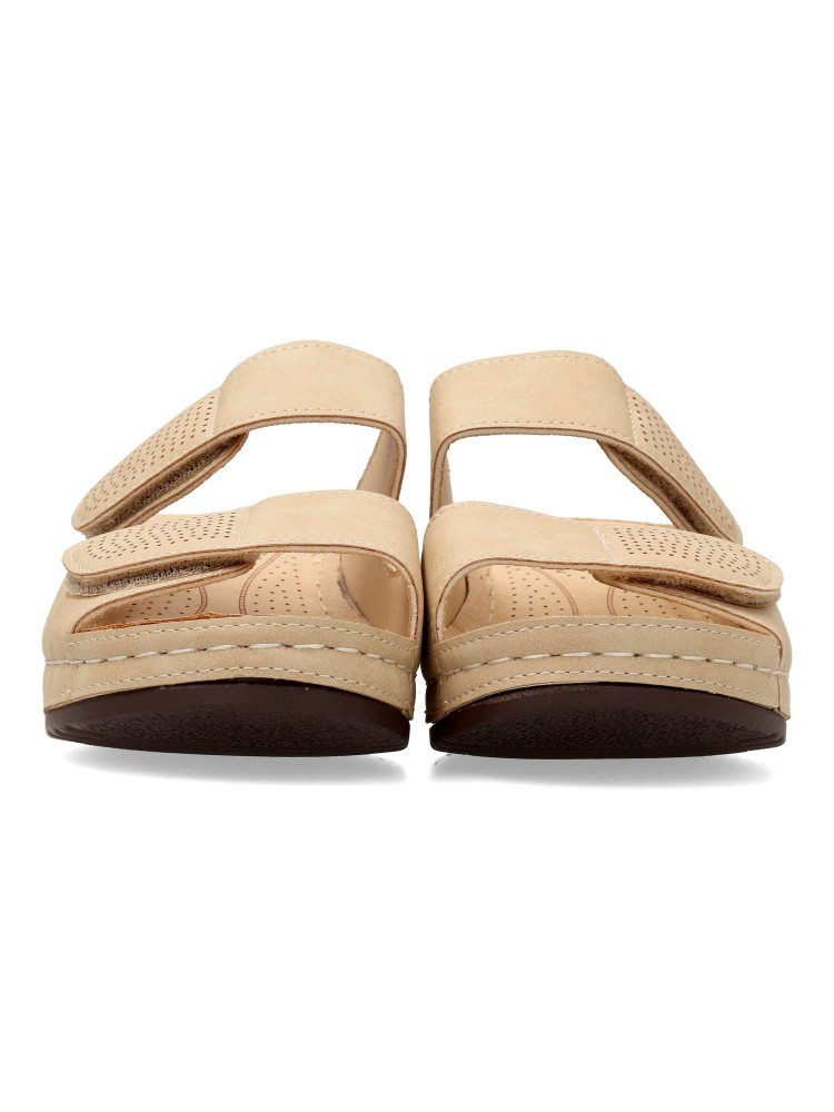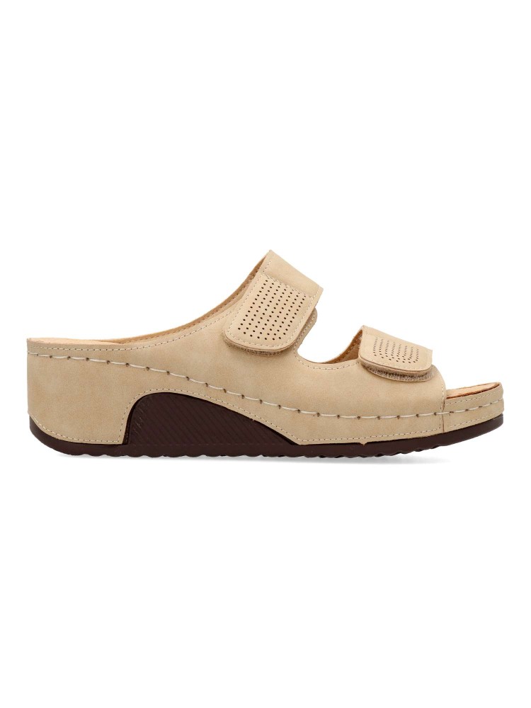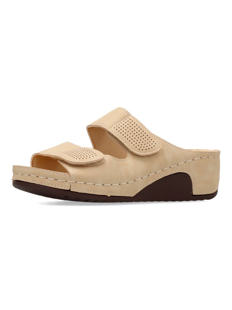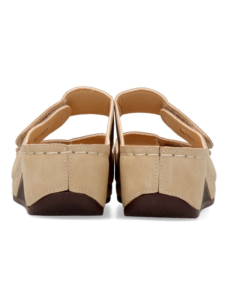 Sandalia cómoda de mujer, con pala ajustable. Modelo tipo zueco, fabricado en piel sintética, con suela de goma ligera y flexible. Planta acolchada. Color beige. Máximo confort, en una sandalia versátil, ideal en tus paseos de verano.