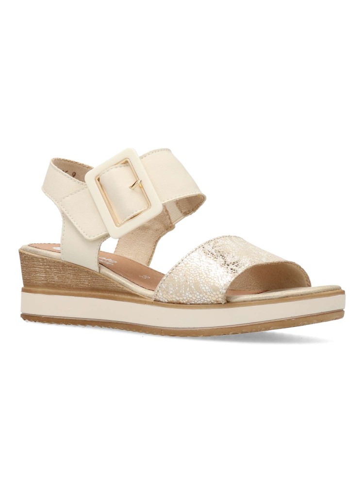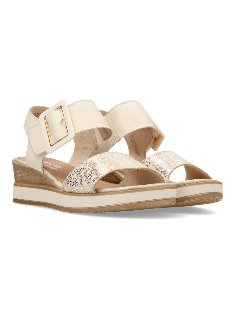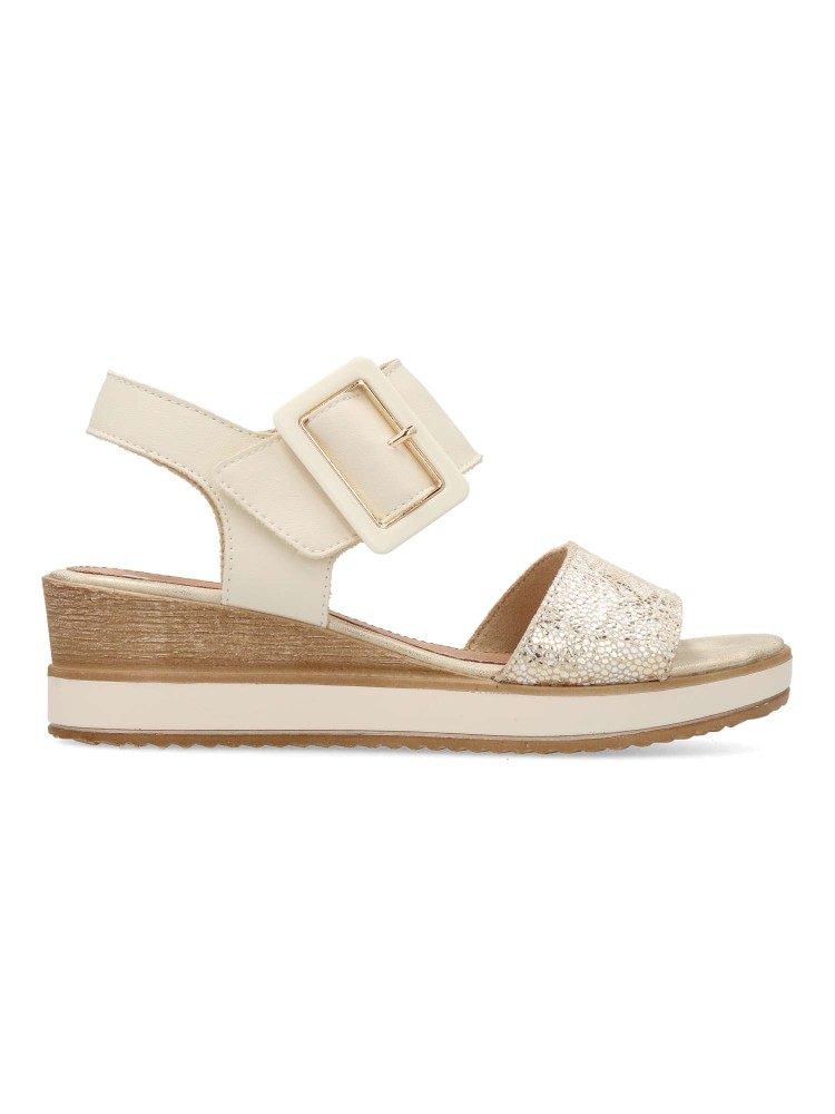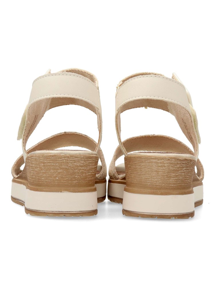 Sandalia de mujer con cierre adherente. Modelo cómodo fabricado en piel, con hebilla decorativa. Suela de goma. Modelo cómodo, ligero y con máxima absorción de impactos. Planta de piel acolchada. Cuña de 4,5 cm. Una sandalia cómoda para lucirlas en verano