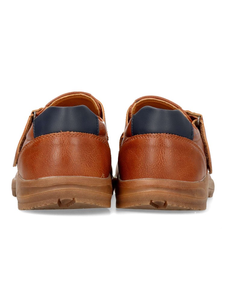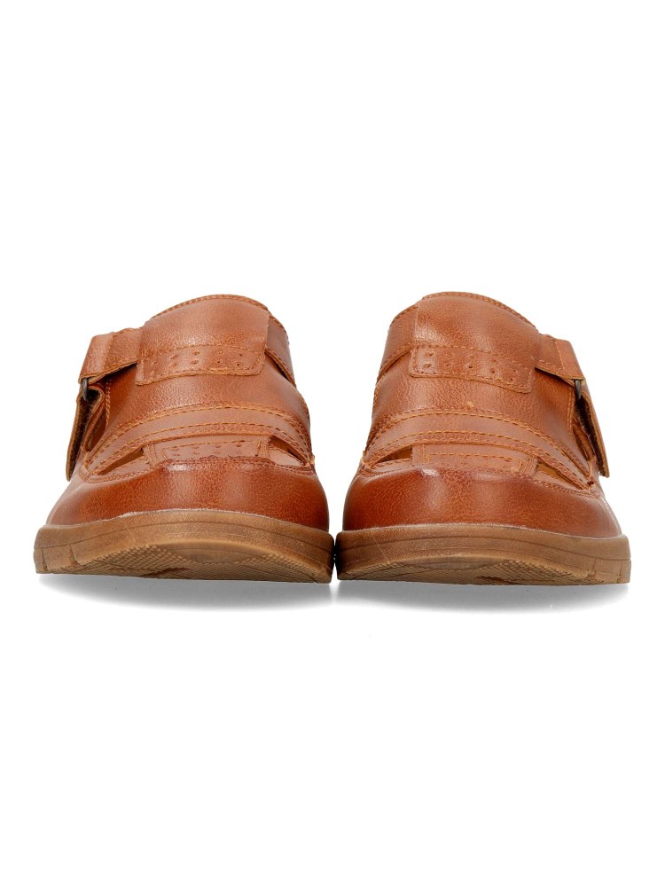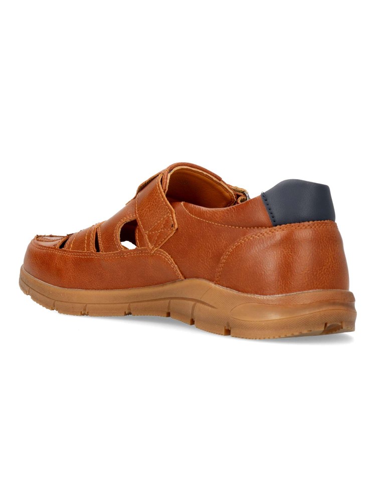Sandalia cerrada de hombre. Cierre adherente. Modelo cómodo, fabricado en piel sintética, con suela de goma flexible. Plantilla extraíble y acolchada. Disponible en color marrón. Ideal para dar frescura a tus paseos de verano.