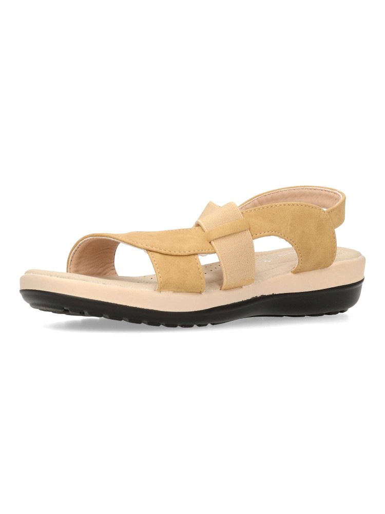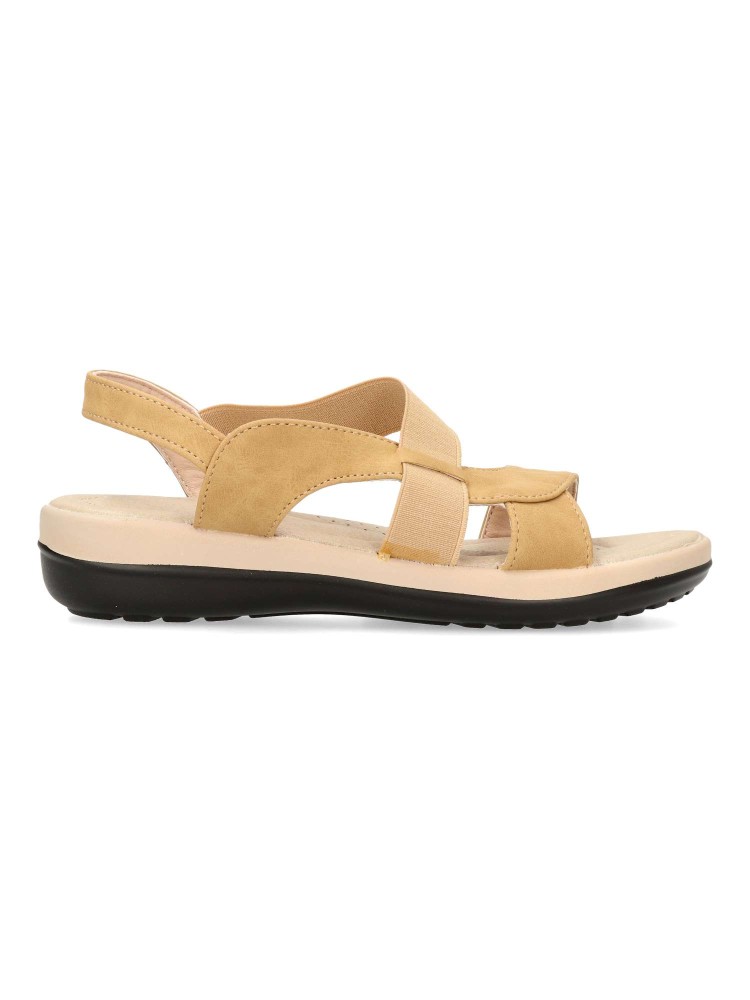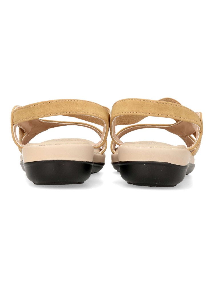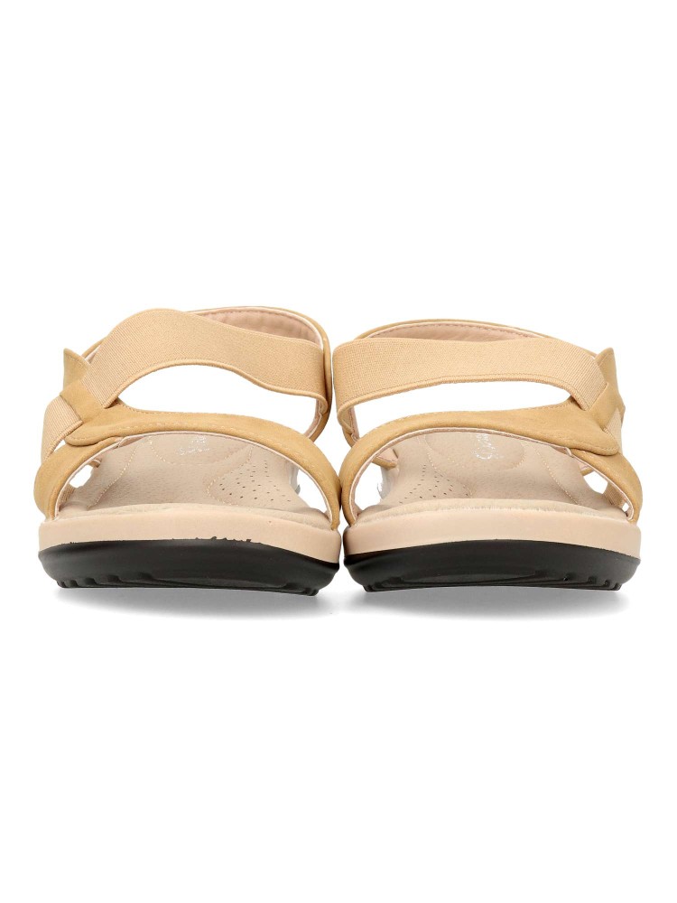 Sandalia plana de mujer, con tira elástica al empeine. Fabricado en piel sintética, con suela de goma ligera y flexible. Planta acolchada. Color kaki. Diseño versátil y cómodo, ideal en tus paseos de verano.