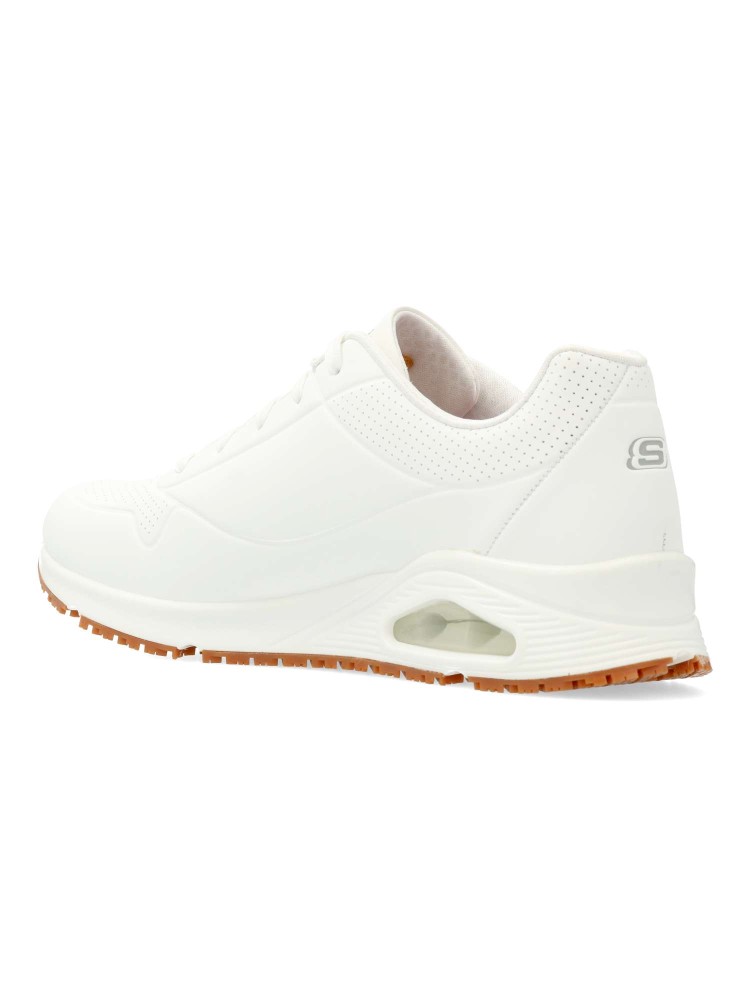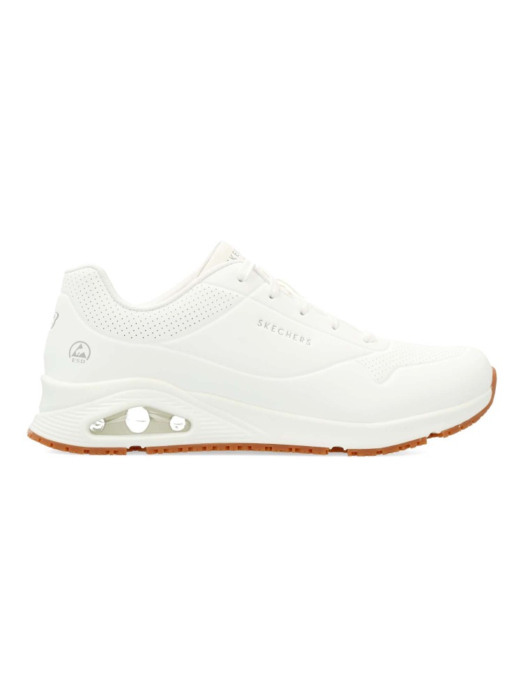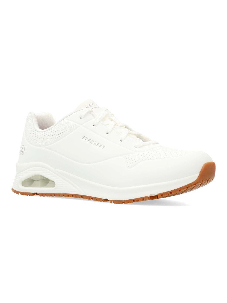 Modelo amplio y funcional con cordones que presenta una parte superior sintética perforada, plantilla Skechers Air-Cooled Memory Foam®, una media suela con cámara de aire visible Skech-Air® y una suela antideslizante. Estilo, la seguridad y la comodidad.