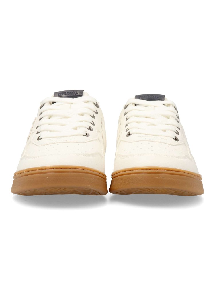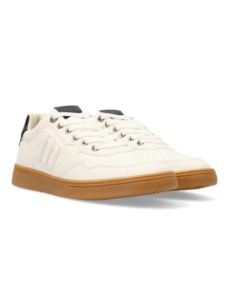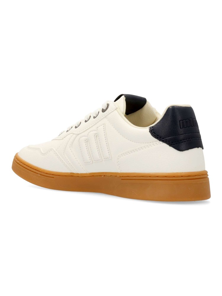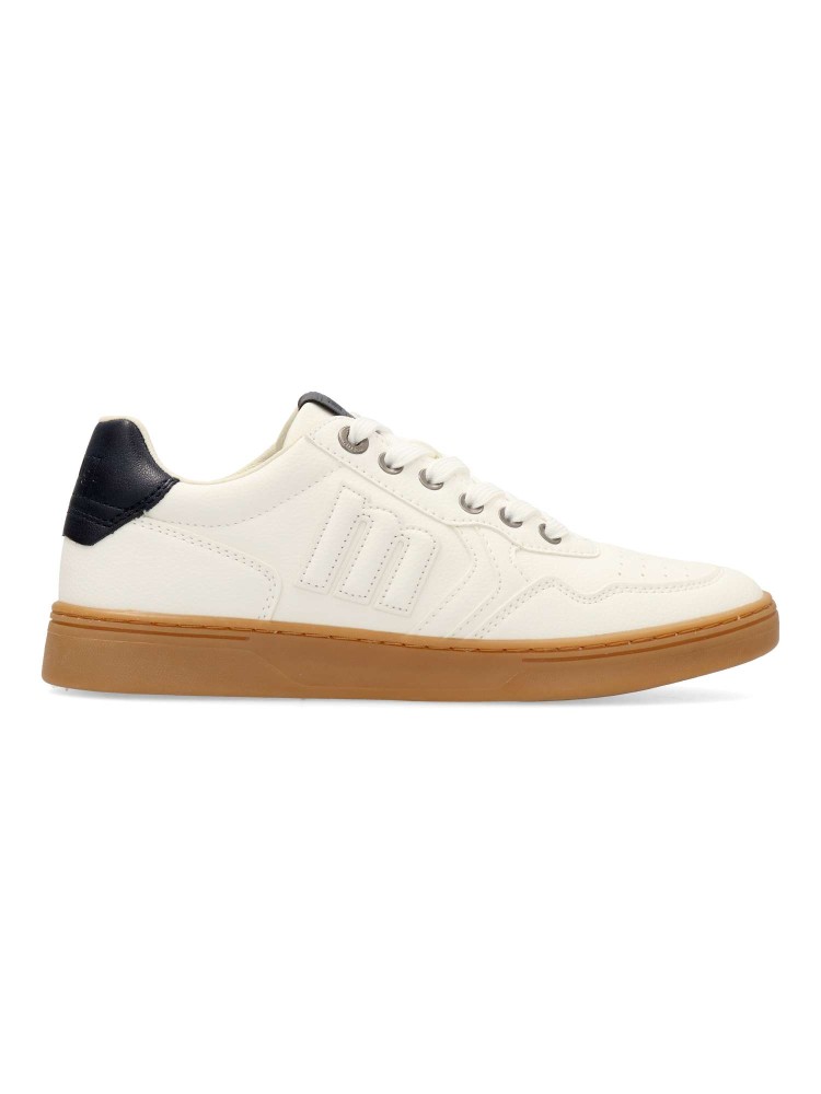 Zapatillas para hombre de Mustang, color blanco. Sneakers cómodo, fabricado en piel sintética, con suela de goma color caramelo. Opción versátil y cómoda para el día a día, perfecta para quienes buscan un calzado casual con un toque moderno y funcional.